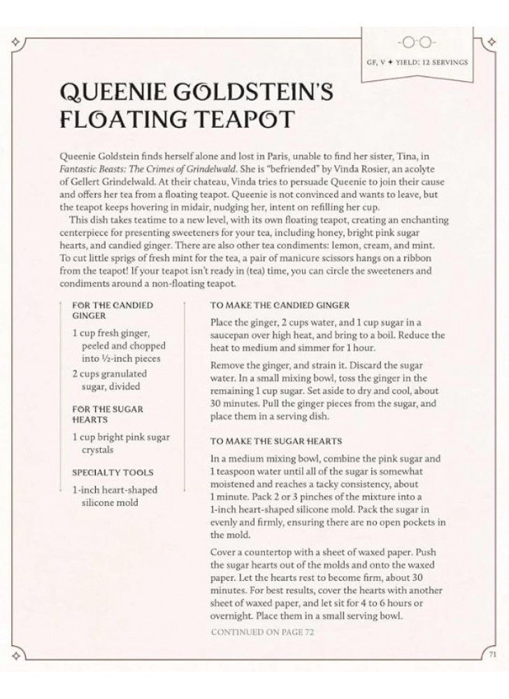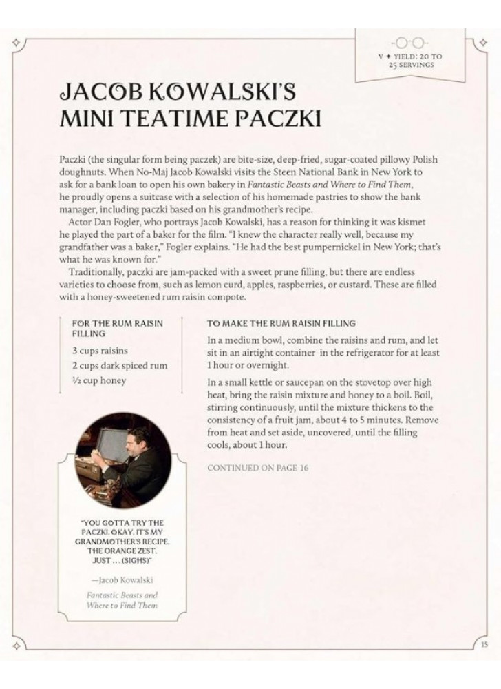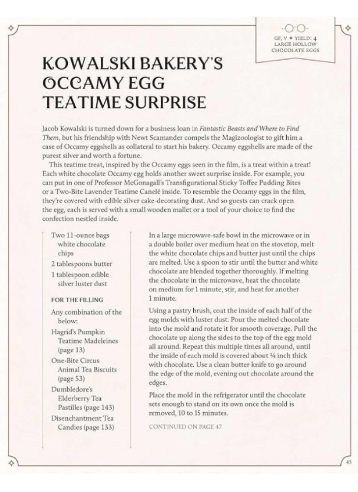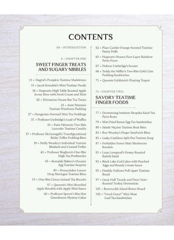 Влаштуйте чарівний, витончений і традиційний британський чай, натхненний Чарівним світом із Гаррі Поттером і Фантастичними звірами: магія післяобіднього чаю! З більш ніж 50 оригінальними та класичними рецептами та приголомшливими повнокольоровими фотографіями, а також закулісними фактами з фільмів «Гаррі Поттер» і «Фантастичні звірі» ця кулінарна книга описує, як організувати свій власний полуденок на тему Чарівного світу, а також як приготувати багато інших класичних рецептів чаювання.