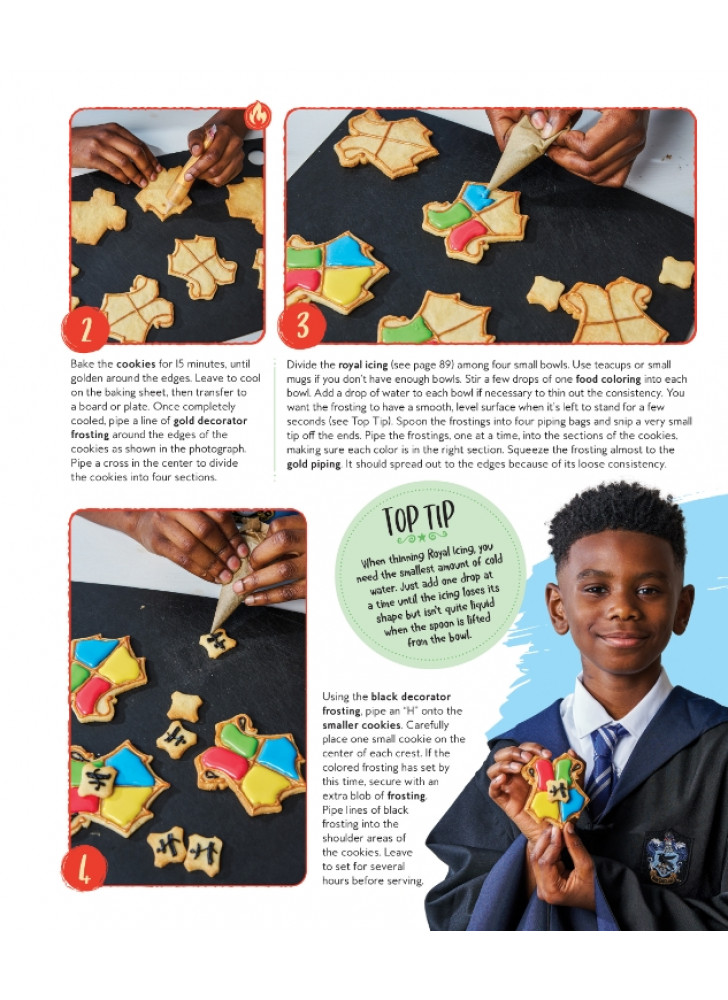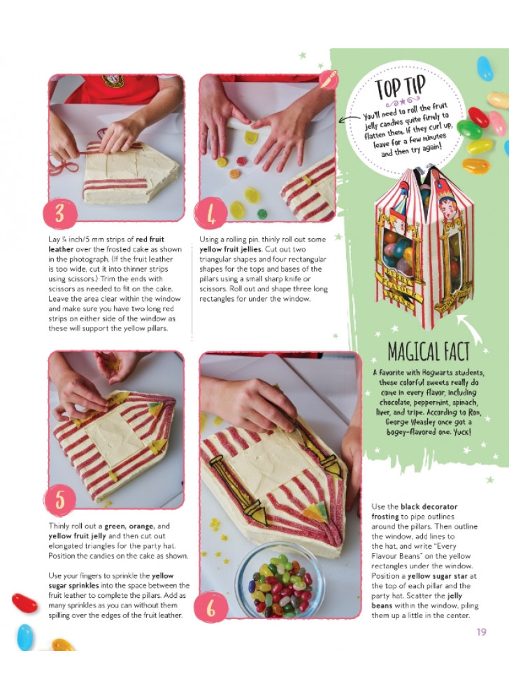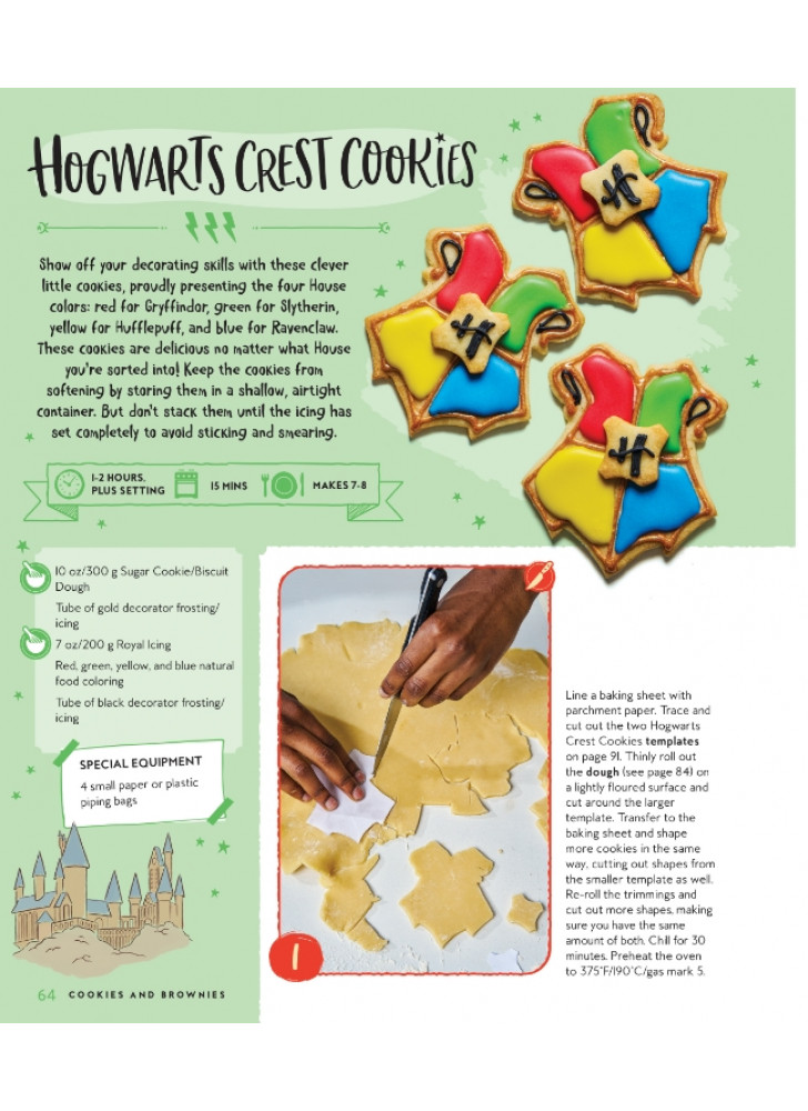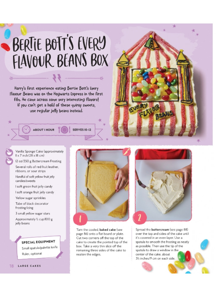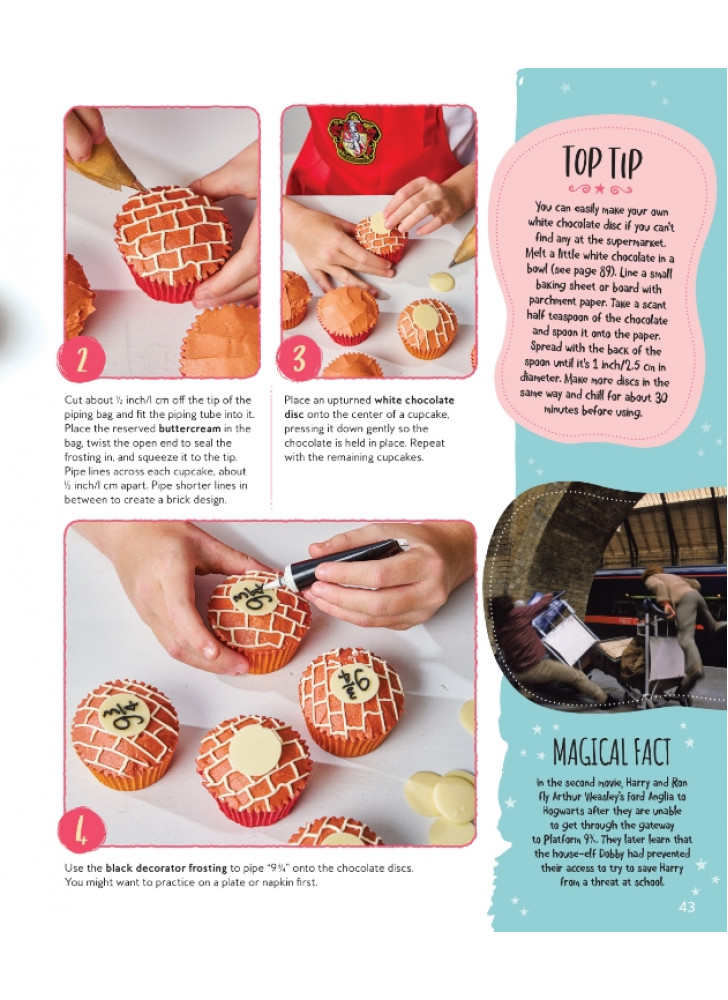 Це офіційне видання наповнене яскравими фото та покроковими інструкціями, адаптованими для дітей, які допоможуть створити 30 магічних десертів. Спечи власного Акромантулу з капкейків, прикрась печиво гербами факультетів Гоґвортсу, або оздоб торт у вигляді Лицарського автобуса — і це ще далеко не все! Кожен десерт можна зробити зі звичайної магазинної суміші для тістечок або печива, або ж приготувати з нуля за базовими рецептами тіста, печива та кремів, наведеними в книзі.