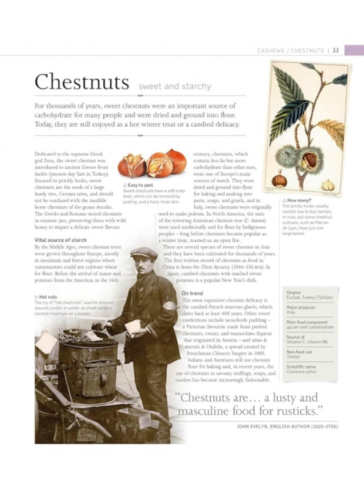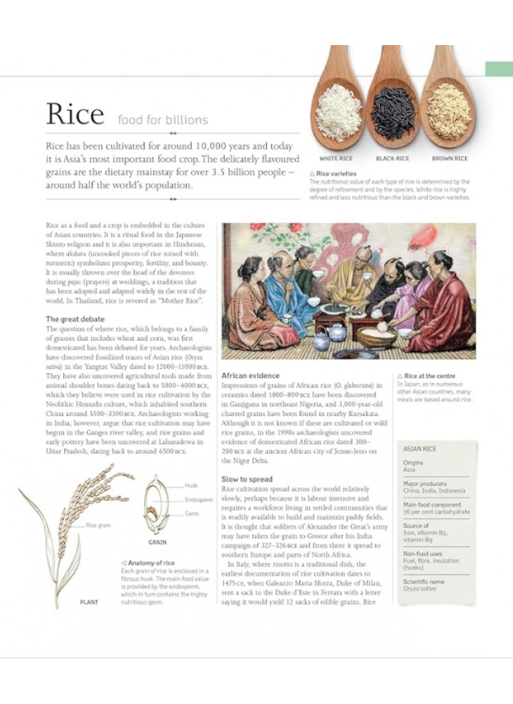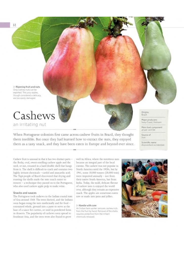 Їжа є наріжним каменем повсякденного життя, культури і навіть релігії. Основні продукти, такі як хліб, квасоля та зернові культури, є частиною нашої кулінарної історії та використовуються різними способами по всьому світу. Цей захоплюючий довідник охоплює всі групи продуктів харчування, включаючи горіхи та зернові культури, фрукти та овочі, м’ясо та рибу, а також трави та спеції, надаючи інформацію про кожен аспект їхньої історії та їхнє місце у світовій кухні.