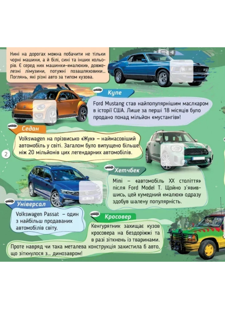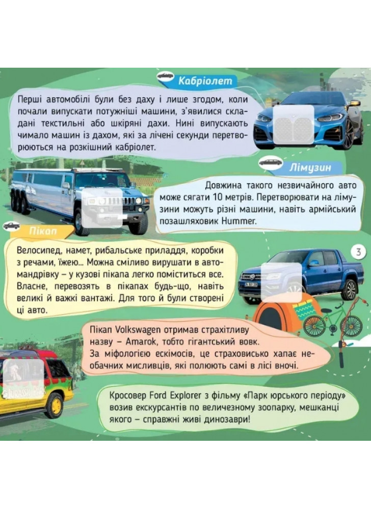 Про перші автомобілі та надшвидкі суперкари, військові авто, величезні Монстр Траки та багато іншого читай у цій захопливій книжці.