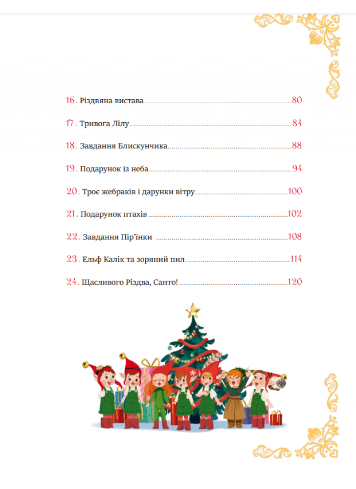 Є лише одне свято, яке змушує мрійливо посміхатися і дітей, і дорослих. І це Різдво. Навіть зимова холоднеча стає не такою кусливою в цей чарівний час. До свята лишаються лічені дні, а чи готовий ти до нього? Чи маєш справжній різдвяний настрій? Мерщій відкривай цю дивовижну книжку, і щовечора Санта розповідатиме тобі одну з 24 правдивих історій про своїх ельфів. Тож очікування Різдва стане незабутнім!