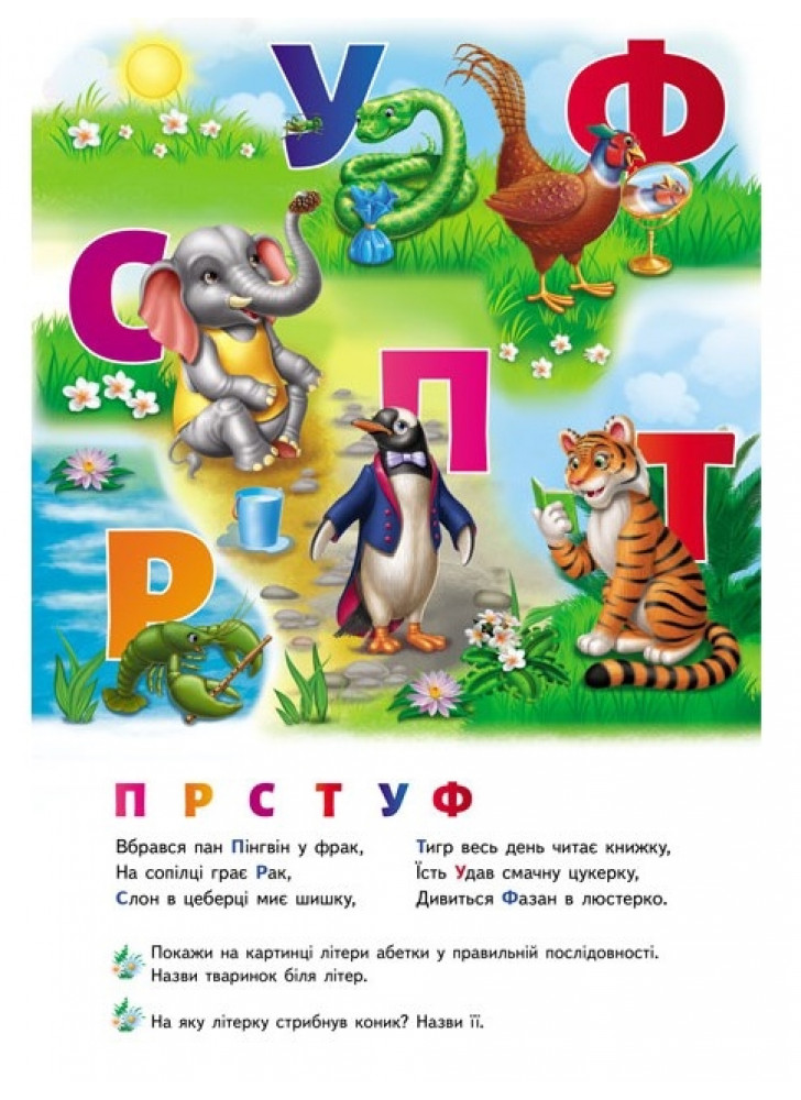 Вчити алфавіт тепер весело, просто та захоплююче! Розгортай панорамні сторінки – і літери оживають разом із їх пухнастими, хвостатими та пернатими друзями! Кожна літера – це нове відкриття! З – запальний Заєць скаче по лісу, Ф – мудра Сова дивиться з висоти, У – звиваючийся Удав сховався у траві, Т – грізний Тигр ричить у джунглях!