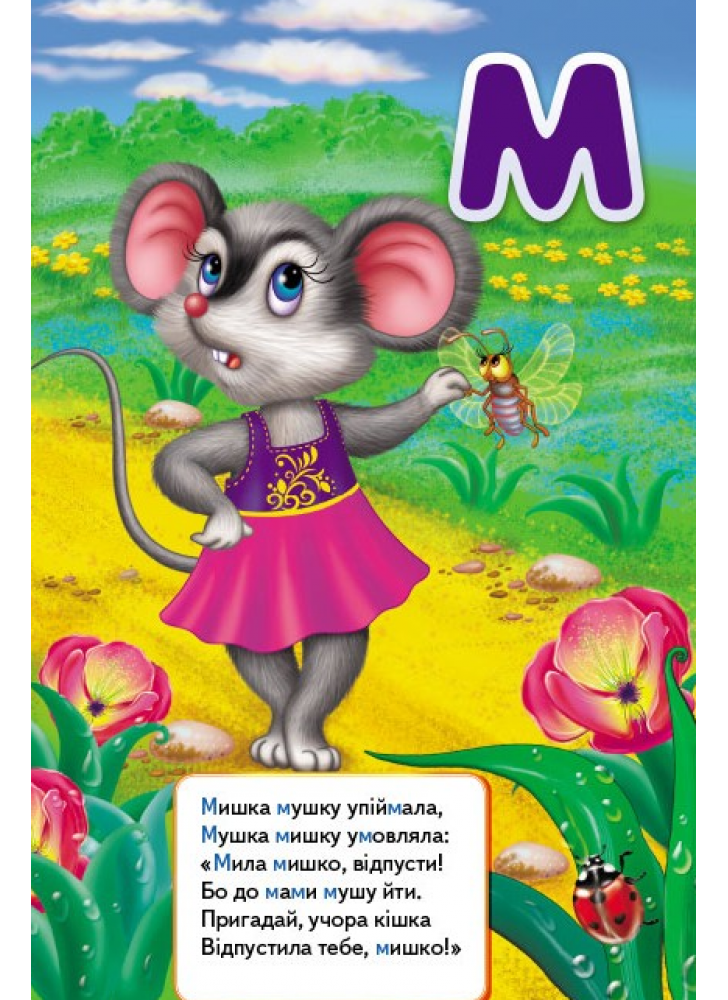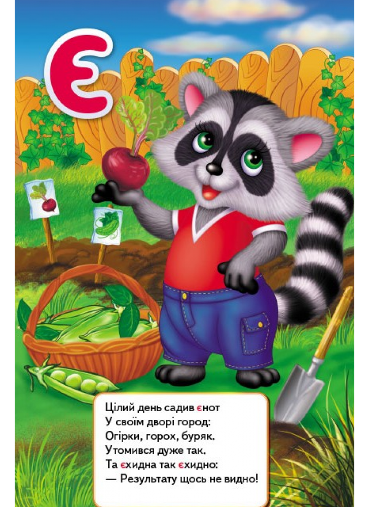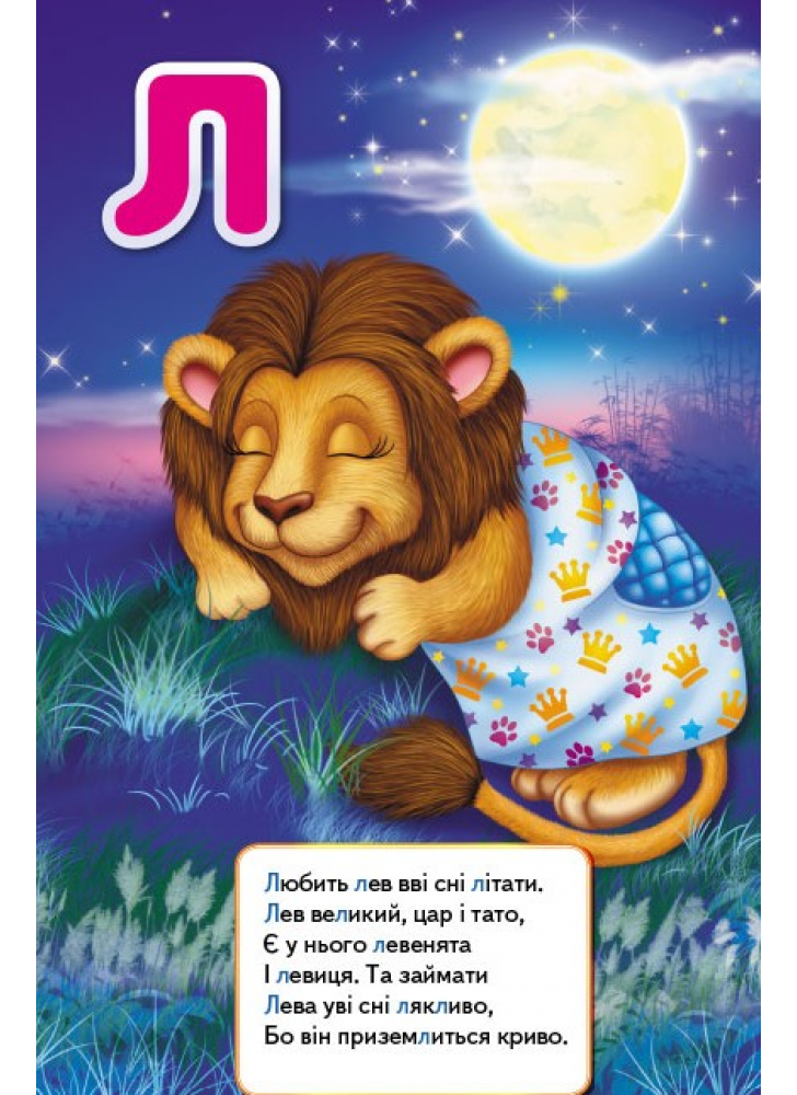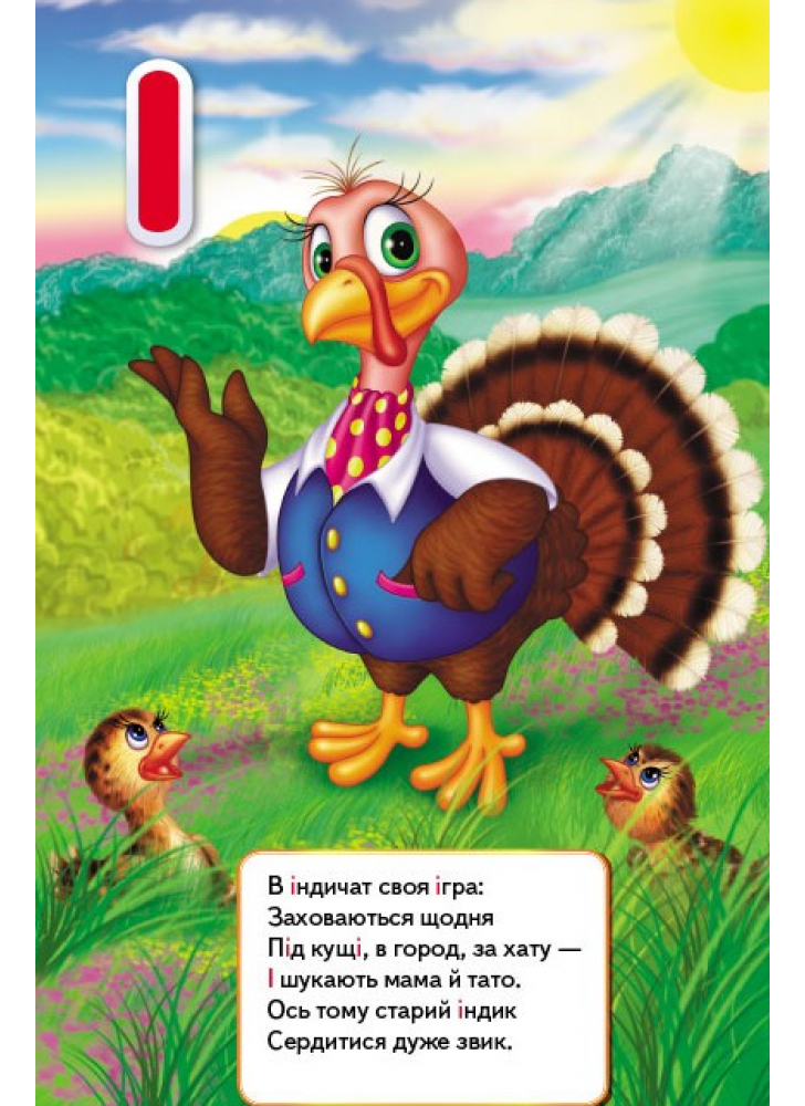 Щоб і справді усе відбувалося впевнено й осмислено, до того ж легко, цікаво і швидко, у книжці є декілька простих, але вельми важливих, навіть необхідних чинників: - Великі, яскраві літери, які легко запам’ятовуються; - Великоформатні, повнокольорові, добрі й веселі ілюстрації, що відповідають кожній літері; - Цікаві, розвивальні віршики на кожну літеру і сюжет малюнків. Слова у віршиках підібрані так, що літера, про яку йдеться, повторюється кілька разів у кожному рядку. Повільно прочитуючи веселі рими, поринаючи в сюжет малюнка з великою, яскравою літерою, дитина легко й охоче вивчить абетку.
