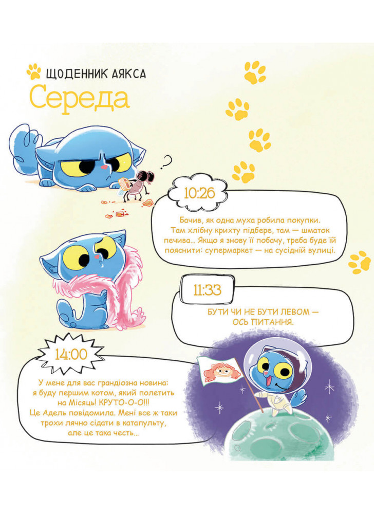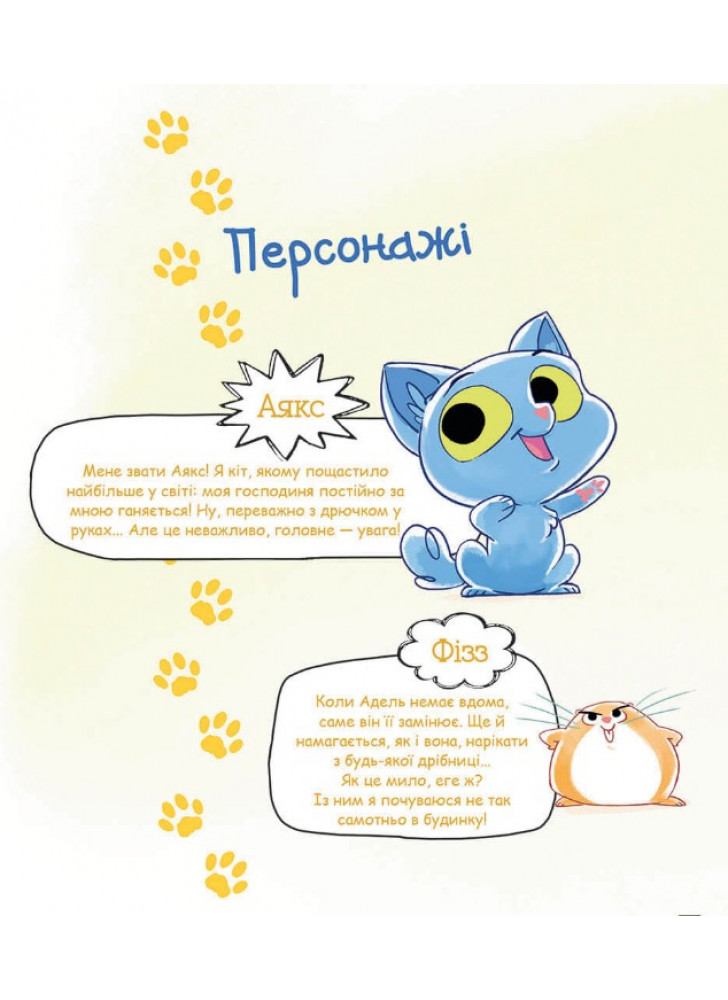 У мене все нявмально. А у вас? Поки Адель зайнята своїми химерними дослідами, нам із Фіззом, хом’яком-гризлі, треба якось розважатися. От побачите: ми з ним відриваємося по повній! Гадаєте, що життю котів можна тільки позаздрити? Нібито вони днями лише те й роблять, що дрімають у тепленькому куточку, ніжаться у своїх м’яких лежаках, хлебчуть свіже молочко й насолоджуються пестощами господаря?