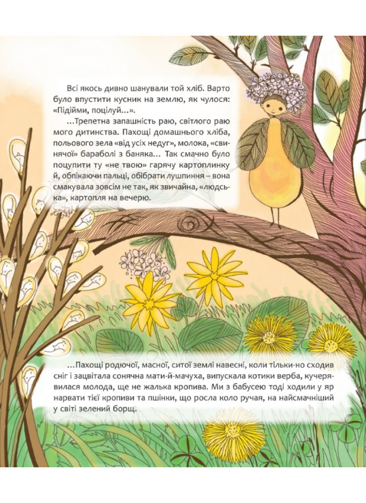 Ця книжка створена на допомогу батькам і педагогам. Вона порушує важливе питання: як говорити з дітьми про національну трагедію — Голодомор і колективізацію. Побудована на родинних переказах автобіографічна оповідь врешті набуває вимірів притчі, де надія та правда перемагають велике Лихо. Виразні динамічні ілюстрації поглиблюють цей притчевий вимір: барви, кольори, квіти — зрештою зцілюють чорну рану болю.