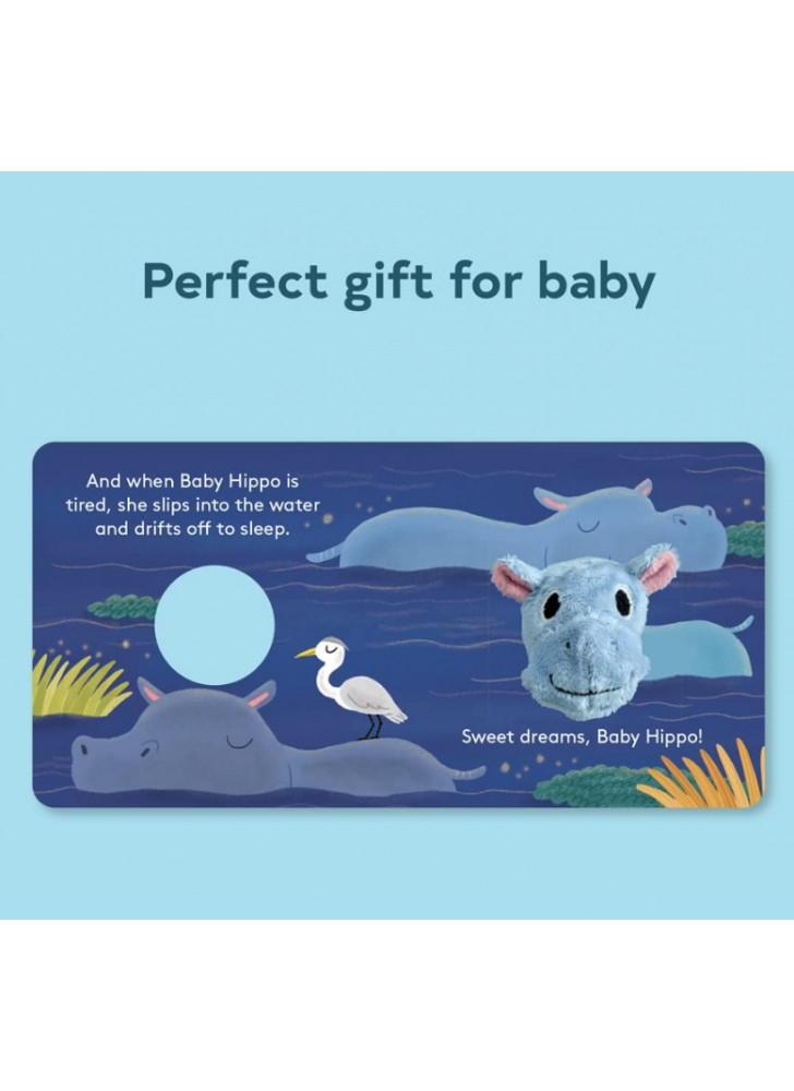 Сповнена кольорів та чарівності, ця книжка про пальчикові ляльки дозволяє допитливим малюкам та малюкам ясельного віку торкатися, відчувати та досліджувати світ, що росте. Новонароджені будуть у захваті від обіймів з Малюком Гіппо! Малюк Гіппо плескається, грається та засинає, коли настає час спати.