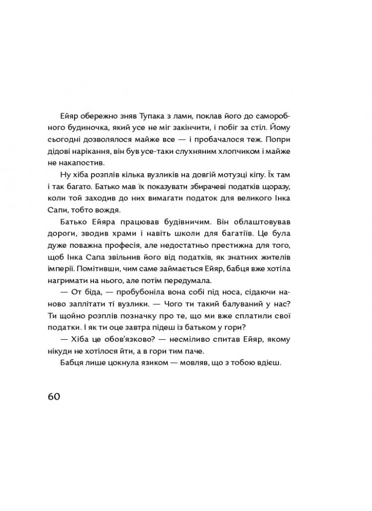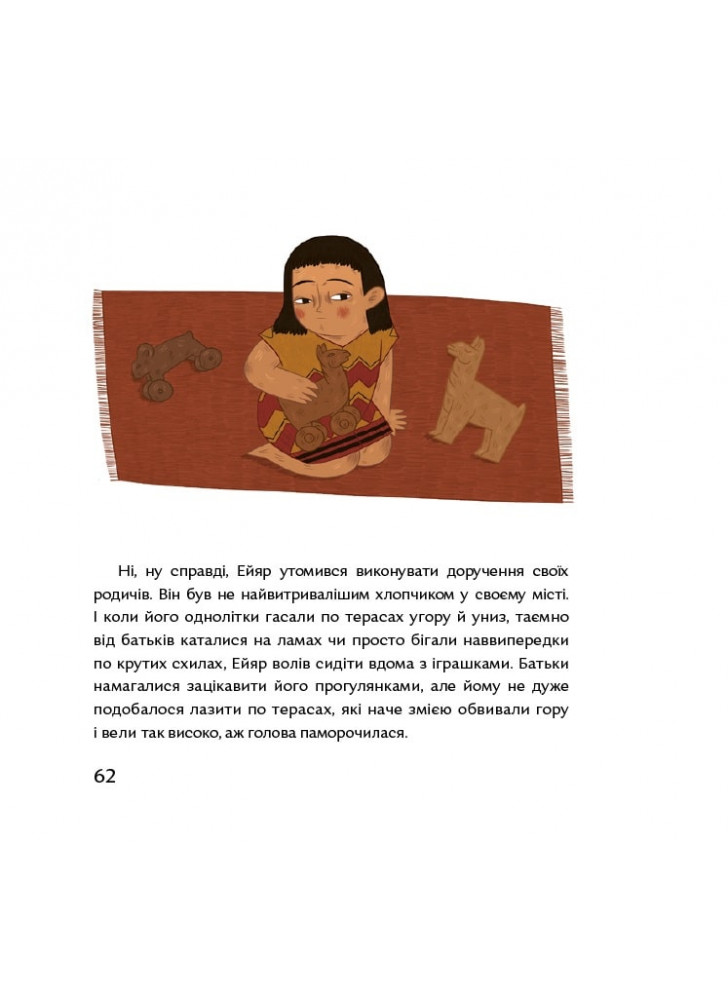 Майя, ацтеки, інки — народи давньої, самобутньої Мезоамерики. Як вони жили? Маленькі герої книжки знають, як зробити каучуковий м’яч, ласують перченим шоколадом і доглядають лам. А ще — зовсім як сучасні діти — задираються із сестрами, не хочуть йти до школи, долають страх висоти.
