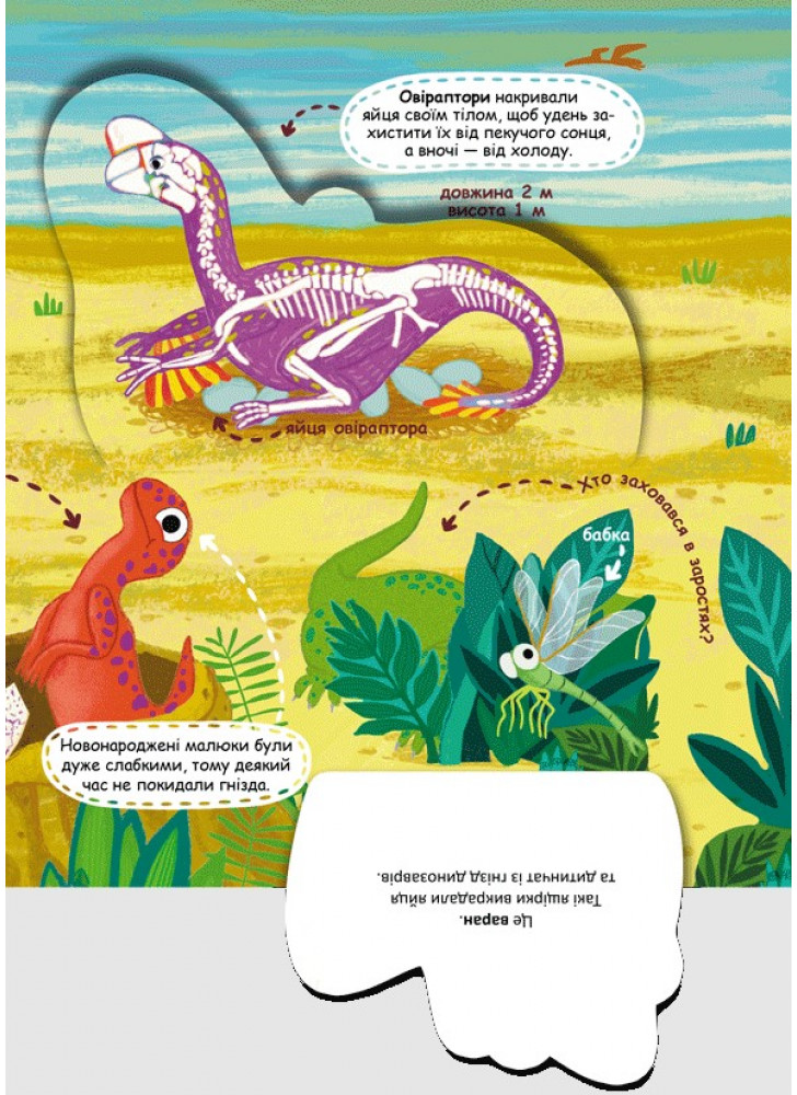 Для читання дорослими дітям Ця книжка є справжньою енциклопедією ЖИТТЯ ДИНОЗАВРІВ, які мешкали на нашый ПЛАНЕТЫ в загадкові доісторичні часи. Мандруйте сторінками книжки: проберіться крізь зарості ПАПОРОТІ та ХВОЩА, зазирніть у підводний світ МОРЯ або посидьте на високій СКЕЛІ, щоб познайомитися з цими цікавими тваринами та їхніми не менш ДИВОВИЖНИМИ СУСІДАМИ. Не забувайте відкривати ВІКОНЦЯ, щоб не пропустити найцікавіше!