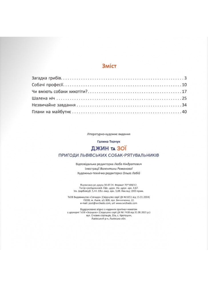 Шість неймовірних історій про двох чудових собак розкажуть вам про це, і не лише про це! Книжку підготовано у співпраці з ДСНС Львівщини і тренерами собак-рятувальників.