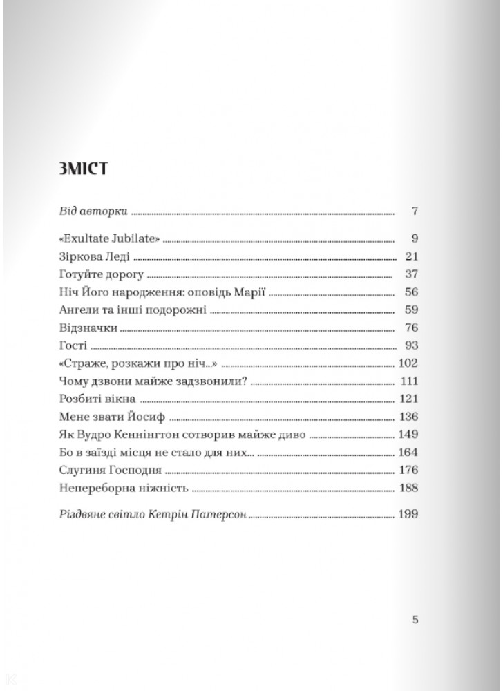 Збірка оповідань відомої американської дитячої письменниці Кетрін Патерсон торкається теми улюбленого усіма свята. У цій книзі - розповіді про дітей та дорослих, про життєві вибори та маленькі дива, про святкову метушню і пошук сенсу, про розбиті серця та розбиті вікна, про жданих і нежданих гостей, янголів і незнайомців, а ще про музику. Кожне оповідання побудоване довкола якоїсь відомої колядки чи церковного гімну.