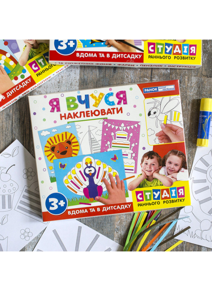 Набір, який допоможе дитині зробити перший крок у розвитку творчих здібностей. Ваш малюк познайомиться з технікою наклеювання та легко засвоїть основні навички роботи з ножицями та пензлями. Цікаві сюжетні фони заохочуватимуть дитину до самостійної роботи і стануть основою її перших шедеврів.