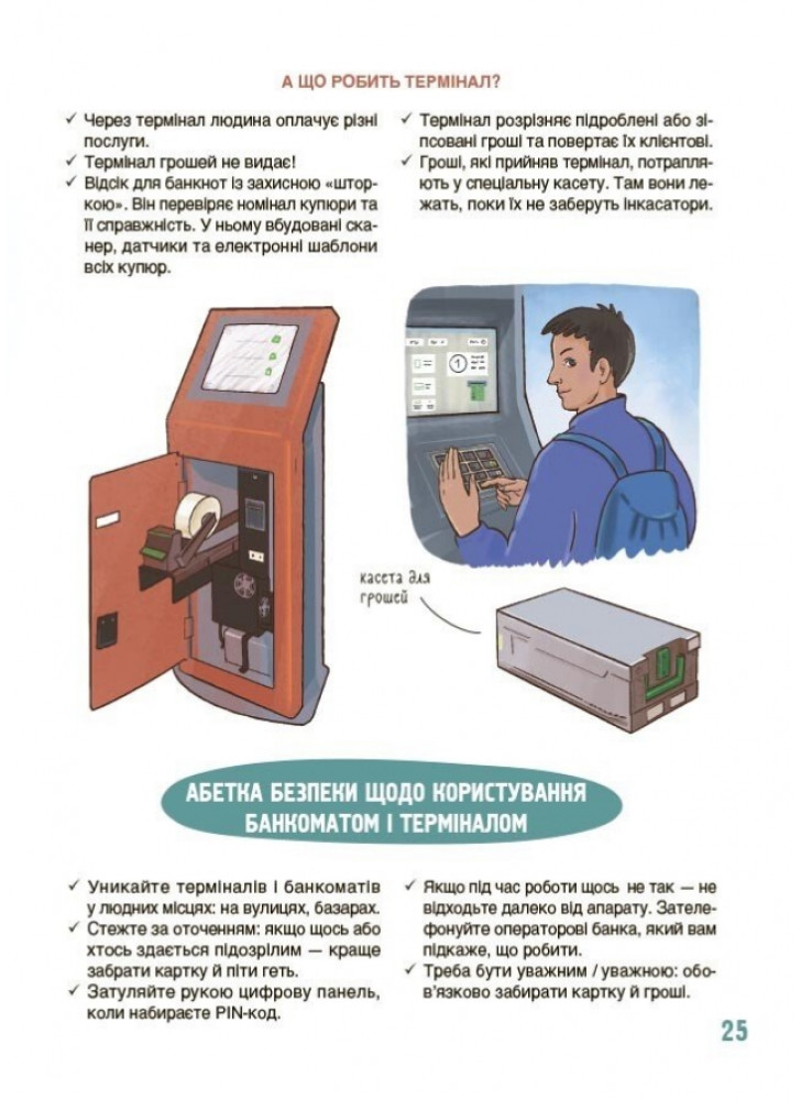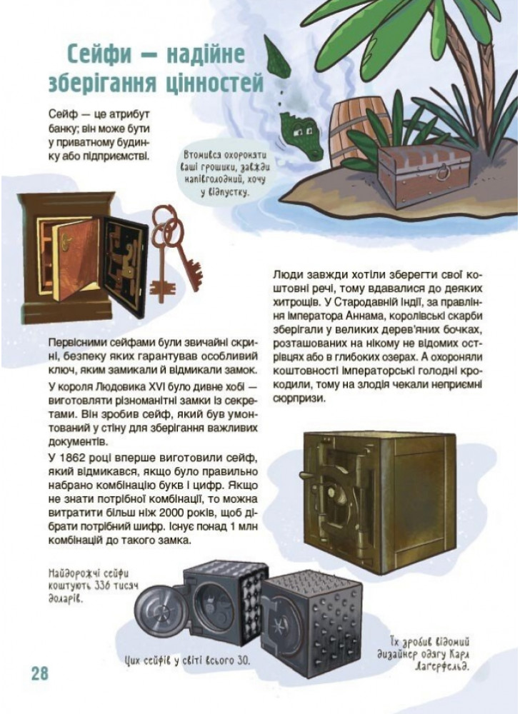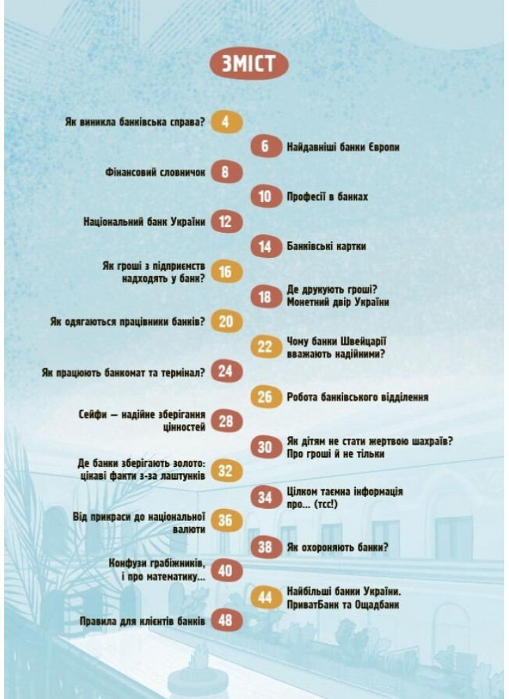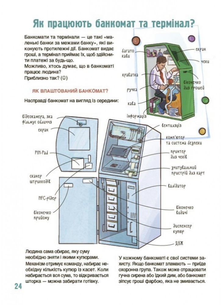 Запрошуємо в дивовижну подорож банками України та світу! Ця енциклопедія відкриє таємниці про те, як виникла банківська справа, як вона влаштована і які сучасні технології використовують у банківській системі. Діти дізнаються: про Національний банк України та особливості його роботи; де друкують гроші та що таке Монетний дім України; як працюють термінали, банкомати, сейфи.