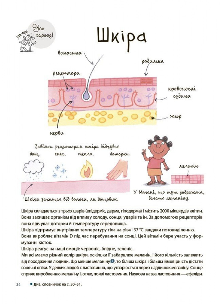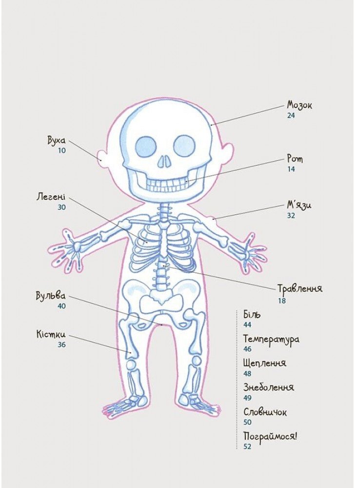 Чому іноді доводиться носити окуляри? Чому в мене світле волосся, а у моєї подружки чорне? Чому може боліти живіт? Чи це правда, що можна вилікувати горло морозивом? Скільки ж всього цікавого та невідомого відкривають діти у своєму тілі! І ось та книга, яка нарешті допоможе знайти зрозумілі та дотепні відповіді на всі запитання!