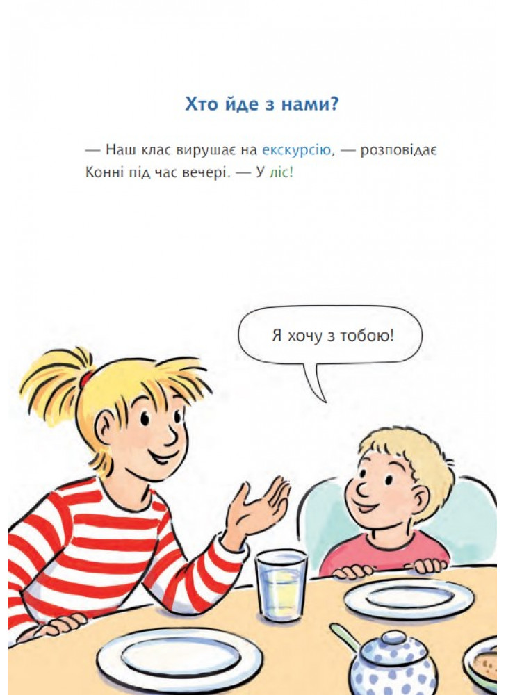Чудова новина! Клас Конні вирушає на екскурсію в ліс. Там можна дізнатися багато цікавого. Конні, Анна і Пауль так захопилися пошуком слідів тварин, що забули зважати на дорогу і врешті заблукали. На щастя, Конні та її друзі виявилися справжніми лісовими детективами. Вони знають, як собі допомогти… Для дітей віком від 6 років.