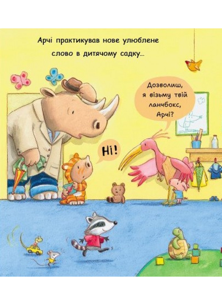 Нещодавно маленький носоріг Арчі вивчив нове слово. І тепер світ уже ніколи не буде таким, як раніше... Що б не пропонували тато з мамою, Арчі каже: «Ні!». Як би не кликали Арчі вихователька та діти у садочку, в Арчі одна відповідь: «Ні!». Ні — кофтинці, ні — сну, ні — новій грі. Та інколи всі «ні» закінчуються і дуже хочеться сказати «так». Книга для батьків та їхніх чудових малюків, які теж вивчили це нове слово, як Арчі.