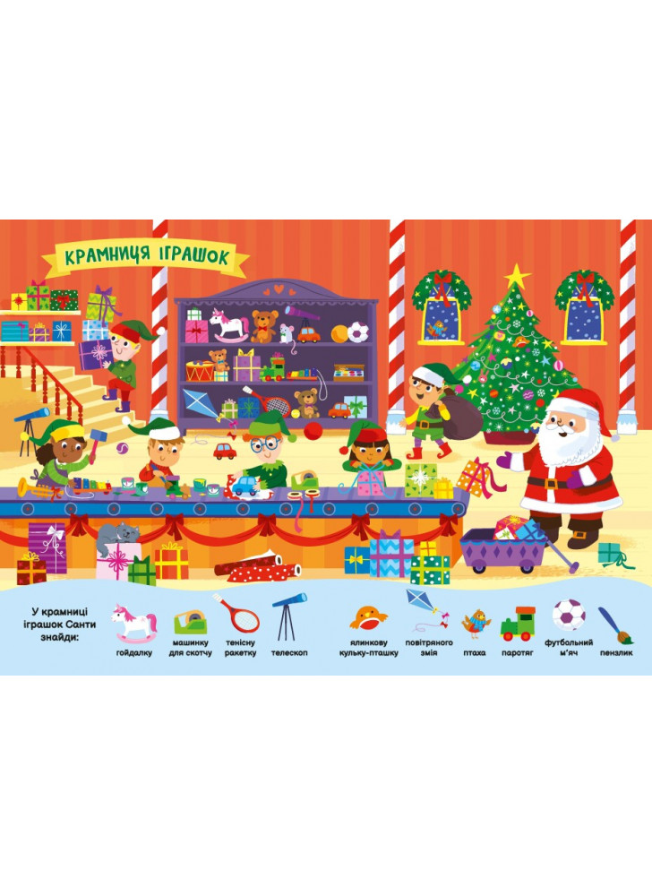 Діти проведуть не одну веселу годину в Країні Різдвяних Чудес, шукаючи людей, тварин, святкові прикраси і, звичайно, Санта-Клауса! Ідеальний спосіб розважитися напередодні Різдва та підготуватися до святкування!