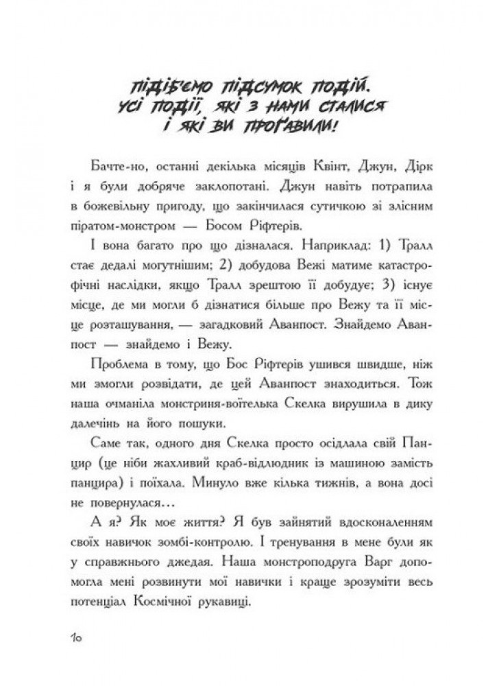 У шостій частині «Останні підлітки на Землі і Дорога скелетів» Джек із друзями вимушені покинути рідні місця Вейкфілда, щоб вистежити свого підлого ворога Тралла. Той замислив збудувати Вежу — портал, який матиме силу прикликати Реджоха Прадавнього.Це буде нелегка місія для підлітків, адже дорогою до цілі їм доведеться зустрітися з купою нових небезпечних монстрів, знайти спосіб, як подолати армію скелетів-солдатів Тралла, та втілити в життя мрію Дірка — подорож постапокаліптичним світом. Але місія того варта, бо пригоди тільки починаються!