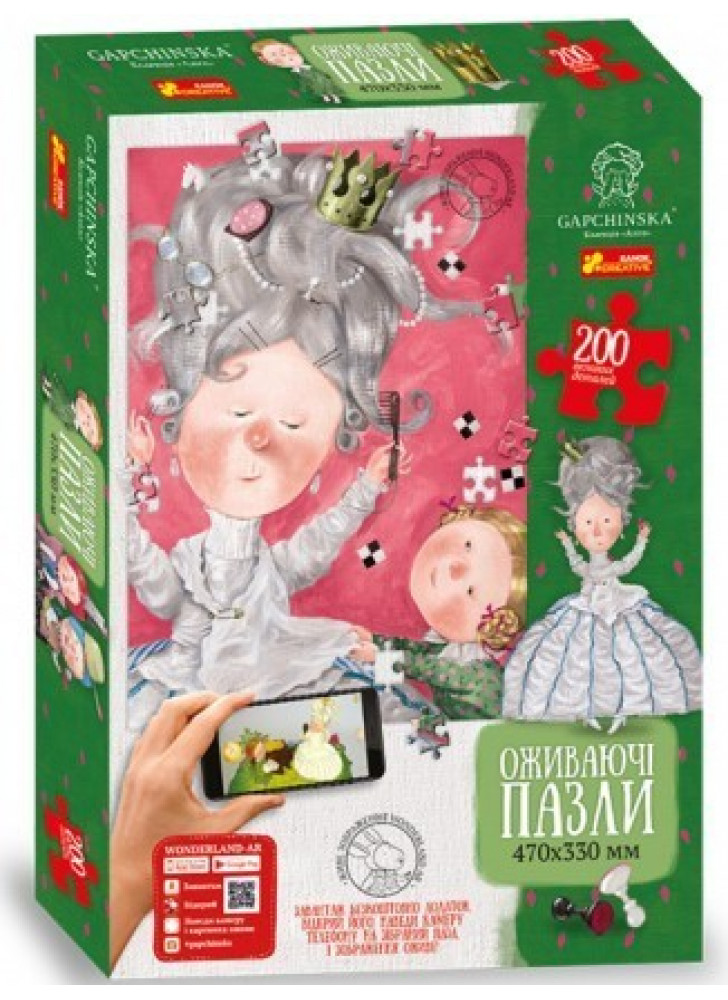 Приємна новина для любителів головоломок! Оживаючі пазли із ілюстраціями Гапчинської. Збирайте разом з дітьми і оживляйте зображення за допомогою додатка WONDERLAND-AR. Розвивайте витримку та логіку у дітей – компануйте 150, 200, 300 деталей!