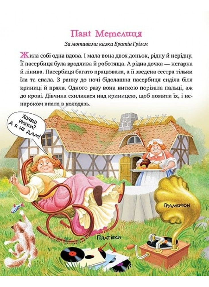Як приємно довгими зимовими вечорами вмоститися в затишку поруч із мамою чи з татом, із бабусею чи з дідусем і розгорнути книжечку, щоб прочитати разом чудові казки та роздивитися яскраві малюнки до них! Це ж справжнісінький чарівний казковечір! Казки Братів Ґрімм слухали в дитинстві всі твої рідні. А тепер і ти дізнаєшся про пані Метелицю; чарівний горщик, який варить смачну кашу; короля, схибленого на модному одязі; хороброго Кравчика… Вмощуйся зручніше та мерщій розгортай цю книжку!