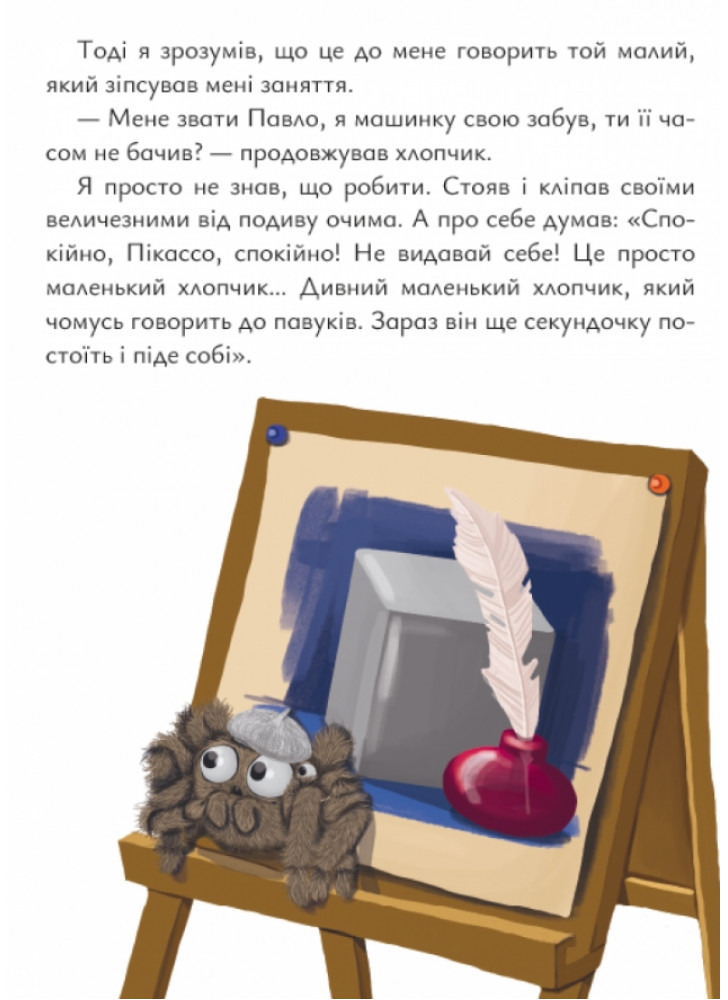 Хай мрія здається нездійсненною, а перешкоди на шляху — надвеликими, завжди є спосіб досягти свого. У цьому переконається павучок Пікассо, який понад усе прагне стати художником. Йому доведеться вийти за межі комірчини й своїх страхів, знайти такого ж затятого друга й навіть вигадати новий спосіб малювання!