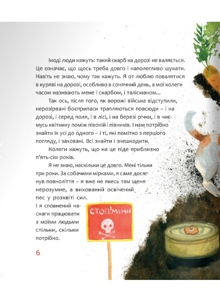 Пес Патрон – улюбленець дітей та дорослих, талісман Державної служби України з надзвичайних ситуацій, єдиний у світі пес доброї волі дитячого фонду ООН ЮНІСЕФ, володар медалі «За віддану службу», який допомагає саперам знешкоджувати ворожі вибухові пристрої. Ця книжка – своєрідна автобіографія Патрона. Зоряна Живка і Богдана Бондар підготували для українських дітей переклад із собачої мови на людську – і з цього вийшла ось така історія. Вона надихає мріяти, вірити й перемагати!