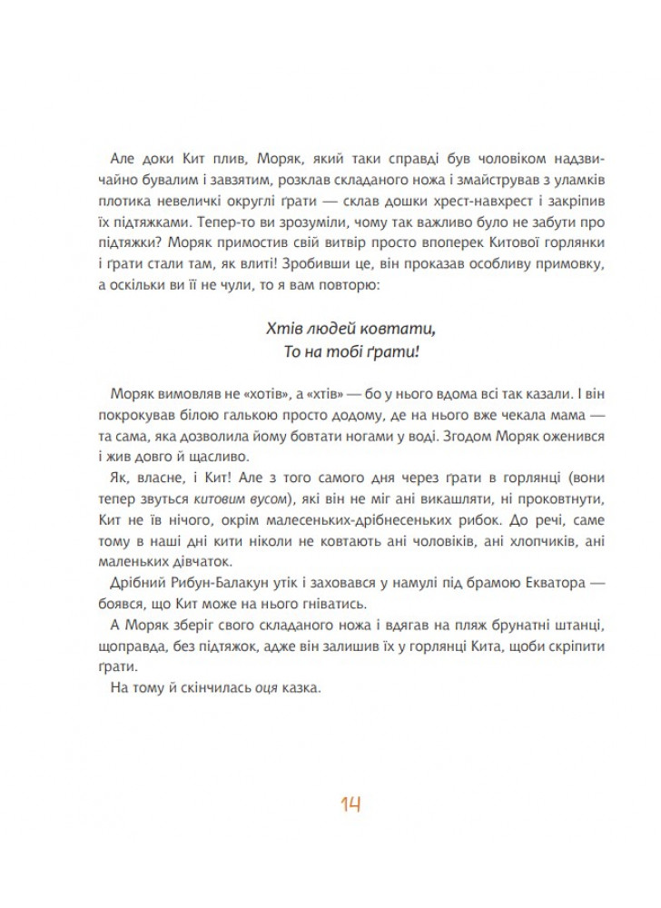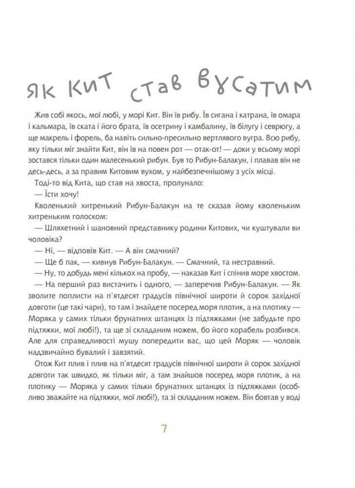 Ця книжка розповість вам про те, як Носоріг здобув шкуру, як вигадали Абетку і навіть чому Кіт блукає, де заманеться. Так, усі герої в цій книжці живі та справжні. А зробив їх такими сучасний київський художник Володимир Штанко. Саме його натхненний пензлик створив неповторний візуальний супровід до геніальних казок.