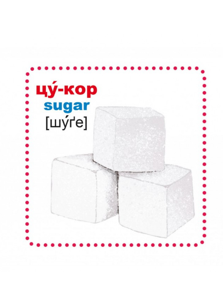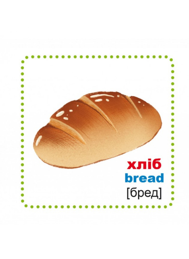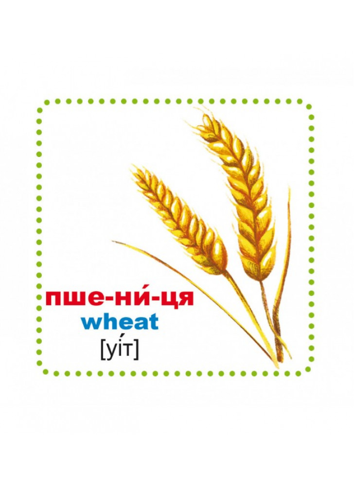 Картки із зображеннями об'єктів. Перегляд таких карток дозволяє дитині швидко засвоїти назви цих об'єктів, запам'ятати, як вони пишуться, розвиває у нього інтелект і формує фотографічну пам'ять. Учи українські та англійські слова, читай слова-приклади по складах, роздивляйся чудові малюнки, учися самостійно складати слова навчайся граючись!