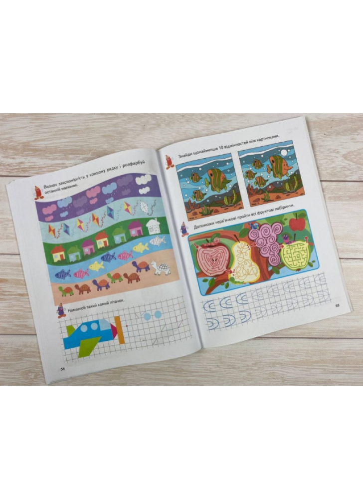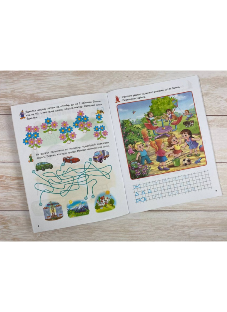 Видання призначене для роботи з дітьми 5-6 років. Різноманітні та веселі заняття допоможуть розвинути логічне та просторове мислення, дрібну моторику, увагу, уяву та пам'ять. У книзі багато завдань на розфарбовування та наведення ліній, освоєння навичок рахунку, розрізнення форм та кольорів, знайомство з тваринним світом. Усі завдання апробовані у дитячих групах.