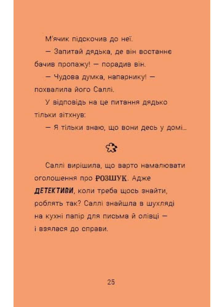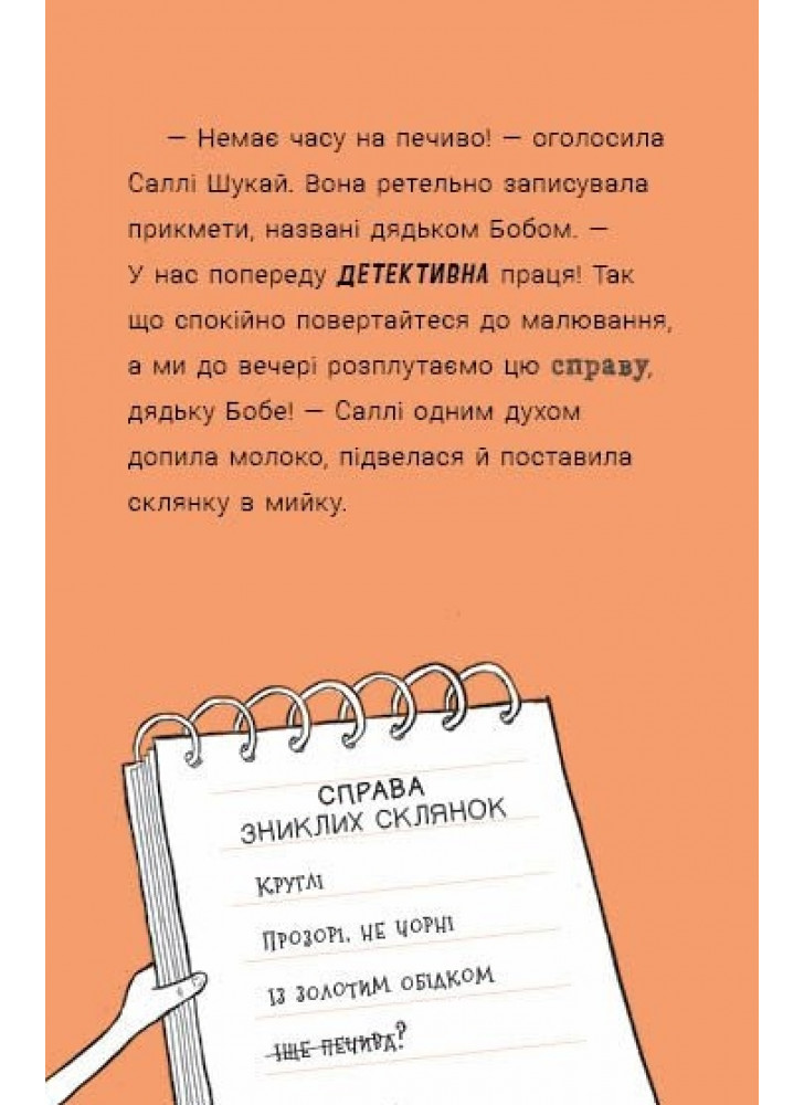 Відомий британський письменник Філіп Арда описує пригоди Саллі Шукай та її вірного пса М’ячика. Саллі Шукай — юна детективка з надзвичайною уявою. М’ячик — незмінний партнер у її розслідуваннях. Цього разу дует відкриває тимчасову штаб-квартиру в домі дядька Боба… але злочини, як завжди, поруч.