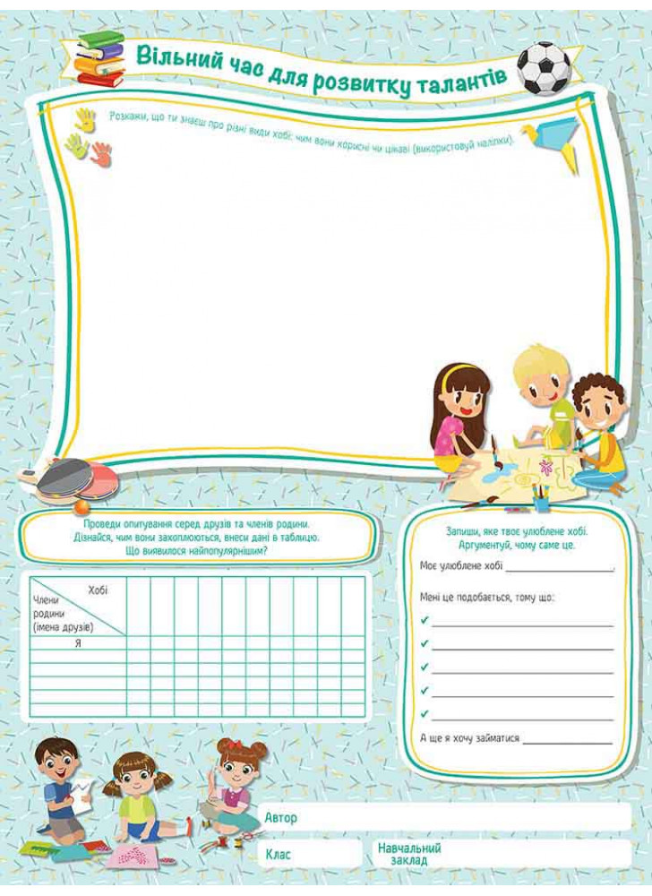 Як приємне та корисне доповнення — постер із проєктними роботами «Корисні звички — міцне здоров'я» та «Вільний час для розвитку талантів», які можна буде презентувати однокласникам. Також у книзі є яскраві наліпки для проєктів і забавки. Розкривайте «Секрети знань», щоб завжди почуватися впевнено!