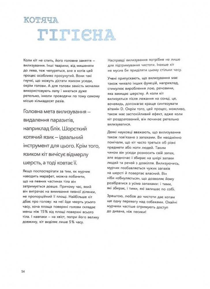 Собаки і коти живуть поруч з людиною не одну тисячу років. За цей час вони стали не просто нашими тваринами-помічниками, а справжніми улюбленцями і членами родин. Та попри такі близькі стосунки й довгу історію спілкування іноді нам буває важко розшифрувати їхню поведінку. Навіщо, наприклад, песики виляють хвостом? Що насправді означає погляд «побитого собаки»? Про що муркотять коти і чому вони такі вимогливі до харчів?..