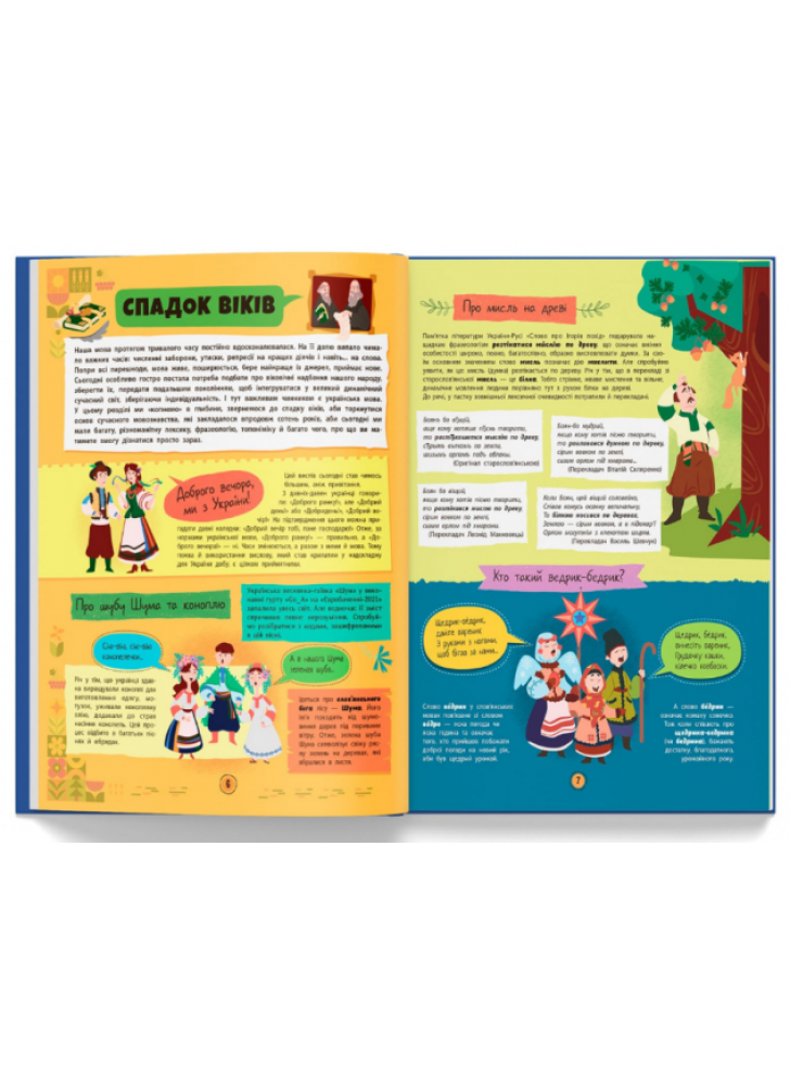 Видання допоможе заповнити білі плями й дати відповіді на ті запитання, які в школі часто-густо залишаються не поставленими. Розкаже про не знані й не чуті раніше цікавинки української лексики, а також про забуті вислови, які зажили новим життям. У книзі розкрито секрети мовних родзинок регіональної лексики, фразеологізмів, українських прізвищ, лайок і сталих виразів, а також приділено увагу важливості правильного наголосу та запобіганню вживання кальок.