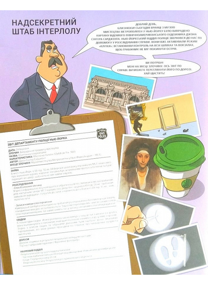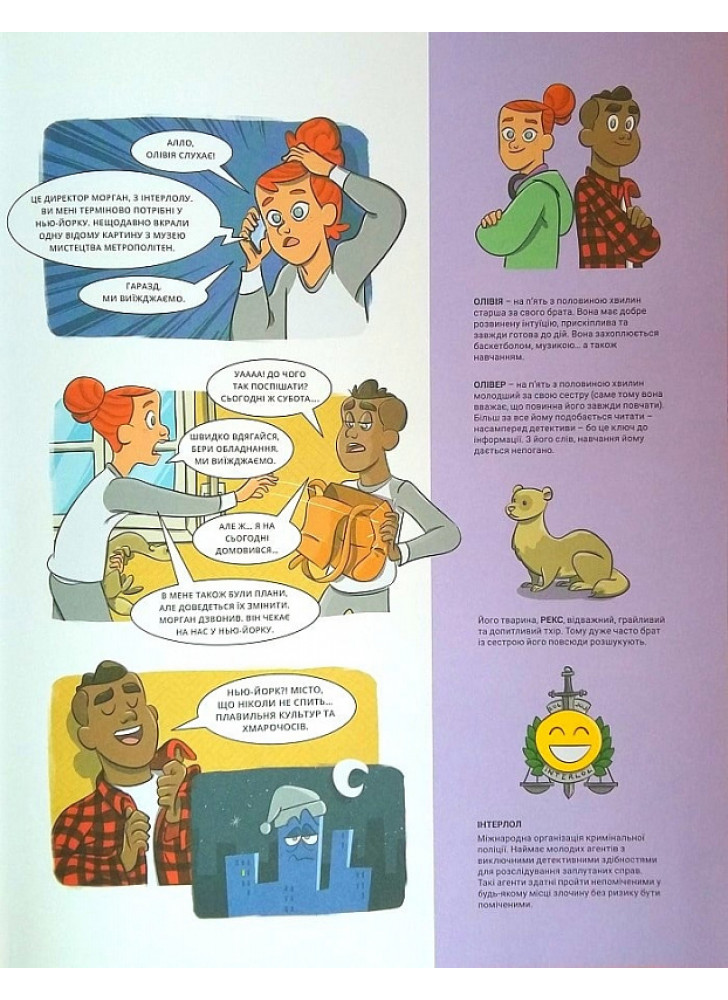 Викрали відому картину з Музею мистецтва Метрополітен в Нью-Йорку! Хто з десятьох підозрюваних з картотеки Інтерлолу виявиться винним? Застосуй свої детективні здібності та допоможи Олівії та Оліверу, близнюкам-детективам, знайти підказки у найвідоміших місцях Нью-Йорка та відкинути всіх підозрюваних, поки не залишиться справжній винний.