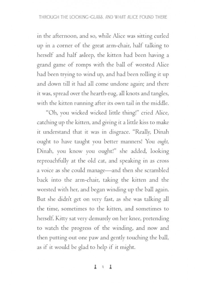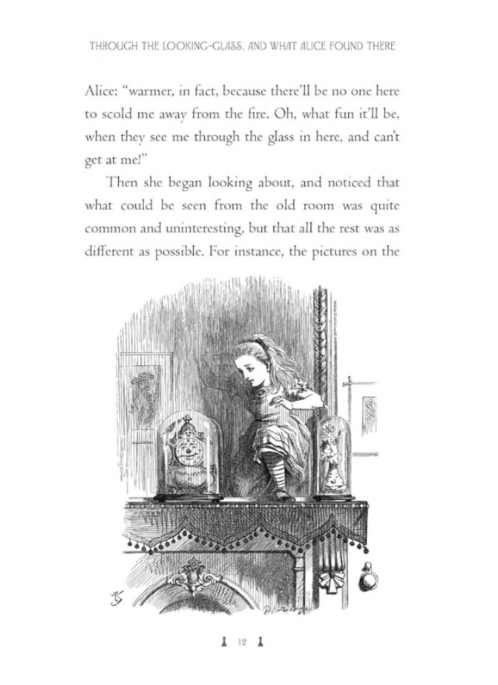 Книга розкішно ілюстрована оригінальними графічними малюнками Джона Тенніела та кольоровими ілюстраціями Джона Макфарлейна, а також містить стрічку-закладку. Це прекрасне тверде подарункове видання книги Льюїса Керролла «Аліса у Задзеркаллі», яка вперше побачила світ у видавництві Macmillan у 1871 році, стане справжнім скарбом у будь-якій бібліотеці.