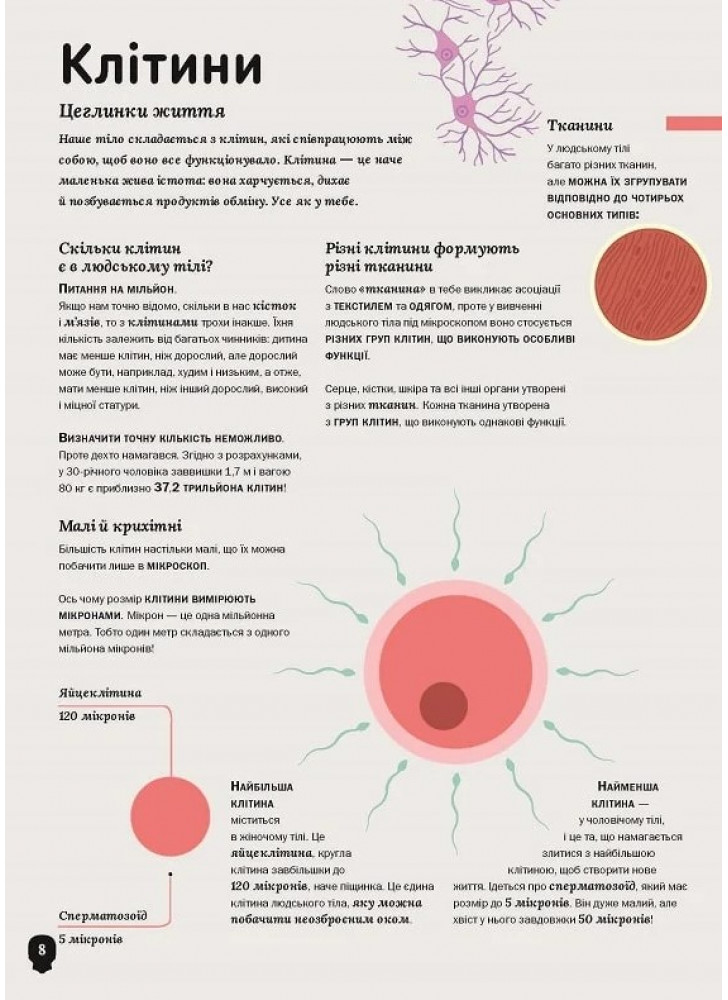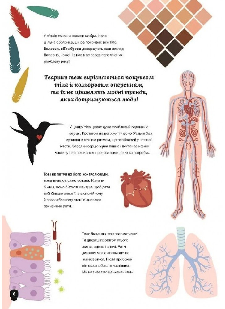 Це не звичайна книга про людське тіло. У ній немає довгих, складних описів, скорочень, хитромудрих термінів. Натомість таємниці людського тіла розкрито за допомогою ІНФОГРАФІКИ — поєднання ілюстрацій і схем. Усе просто і зрозуміло — достатньо одного погляду, щоб відчути себе експертом! І це ще не все: ти дізнаєшся багато дивовижних фактів не тільки про людей, а й про тварин!