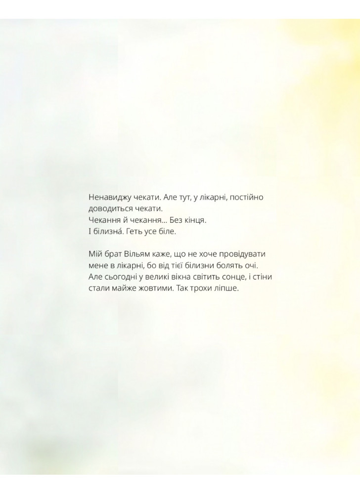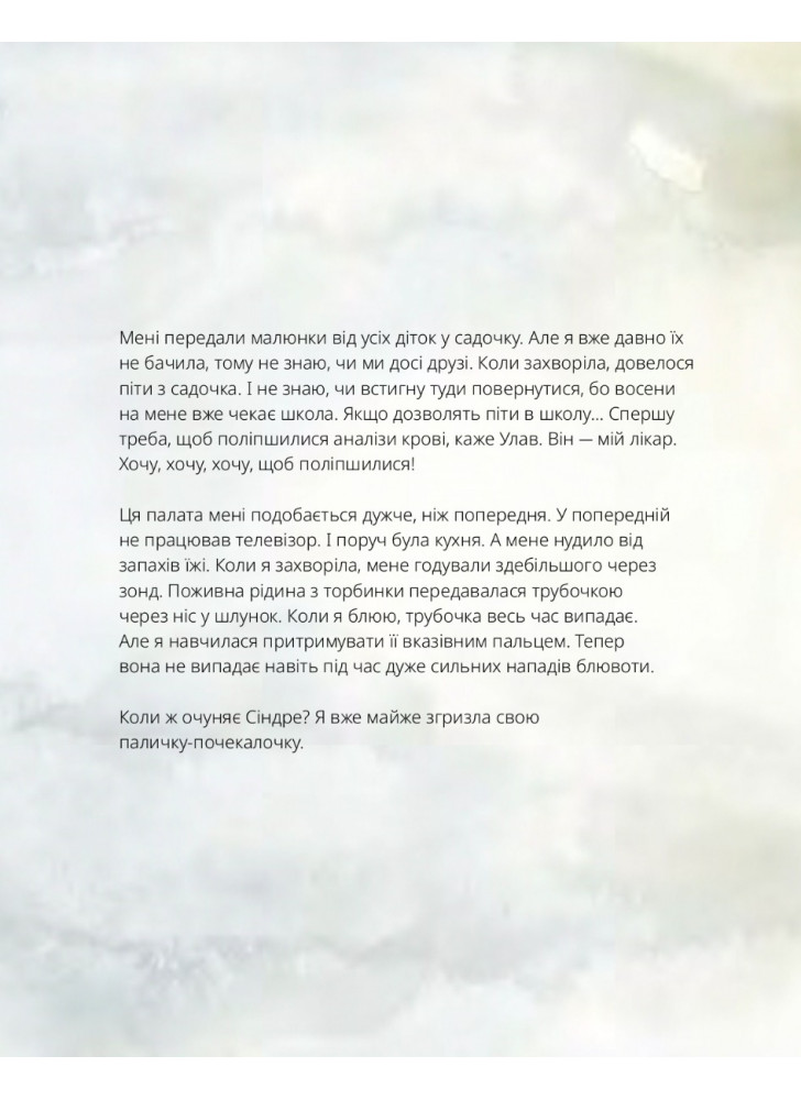 Коли я захворіла, довелося покинути дитячий садок. Я не встигаю повернутися в садочок. Бо восени почну навчатися в першому класі школи. Якщо дозволять лікарі. У Вільї рак. І хоч життя складається інакше, коли важко хворієш, усе ж у лікарні трапляються звичайні і веселі події.