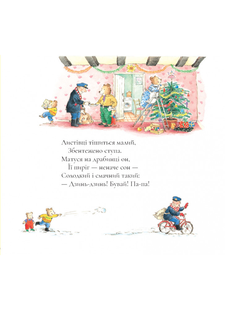 Хочете побачити, яка вона, святкова пошта? Книга є не лише цікавою історією, адже вона сповнена листами-загадками, іграми, віршами та безліччю інших варіантів цікавого проведення часу. Сюжет дуже тонко та яскраво доповнений талановитими ілюстраціями, у яких головні герої ніби оживають і збираються в очікуванні зимових свят.