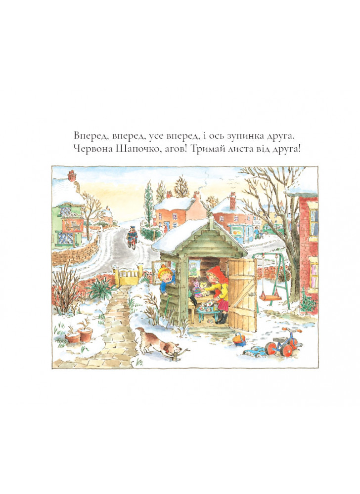 Герої казок теж святкують Різдво і чекають на подарунки і привітання. Тож у Святвечір Листоноша має багато роботи. Що в його торбоноші сьогодні? Листівка для Ведмедика, настільна гра для Червоної Шапочки, забавка для Хитуна-Бовтуна, щоб він не сумував, поки одужує в лікарні. І багато іншого!