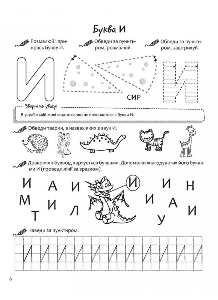 Закріпить навички утримувати олівець або фломастер, навчиться орієнтуватися на сторінці зошита та відпрацює початкові графічні навички, збагатить свій словниковий запас. Посібник стане у пригоді батькам 4–5-річних дітей, вихователям дитячих садочків.