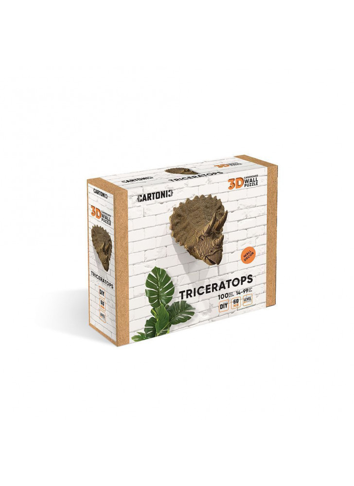 Трицерапторс був одним з найвражаючих і найсильніших земноводних, що колись розгулювали нашою планетою. Він мав три роги та броньовану шкіру. Зібрати цього потужного динозавра - це справжній виклик, але не турбуйся! З нашим 3D пазлом Cartonic збирання буде захоплюючою пригодою. Ти зробиш власноруч модель трицерапторса, яку можна розфарбувати та повісити на стіну, як декор.