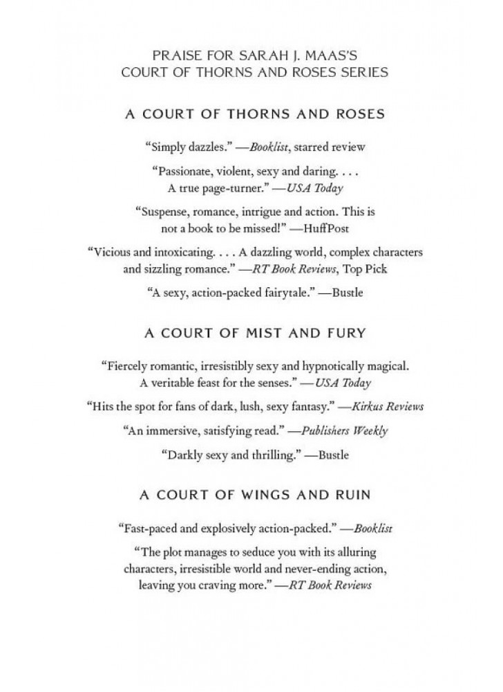 Опублікований у 2015 роман швидко здобув прихильність авдиторії. Тепер це бестселер The New York Times, що на Goodreads має рейтинг 4.19 і понад 2.9 мільйонів оцінок та буде екранізований компанією Hulu. Сара Дж. Маас українською підкорила наших читачів своїми романами з гарячими сценами, масштабними фантастичними світами, непередбачуваними сюжетними поворотами, героями й героїнями, які захоплюють, дратують і шокують. Але дарують розмаїття почуттів і залишаються в серці на довгі роки. Авторка пише натхненно й активно, тому для поціновувачів якісного фентезі знайдеться потрібна книжка.