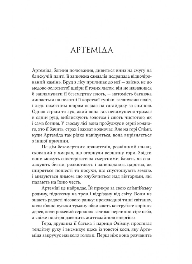 Богиня дає дівчинці ім’я Аталанта, що означає — швидка, сильна, нескорена. Аталанта зростає в лісі разом з дитинчатами ведмедиці і стає нездоланним супротивником на полі бою та найшвидшою бігункою. Юна Аталанта приєднується до загону аргонавтів Ясона з благословення Артеміди. Але чи зможе Аталанта посісти своє місце у світі, створеному для чоловіків?