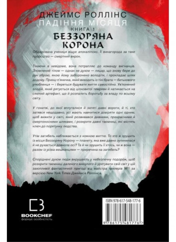 Утім загибель наближається з кожною миттю. То хто ж зрушить із місця Беззоряну Корону — планету, яка вже давно зупинилася й не рухається довкола осі? Та й чи зрушить її хтось, чи ж вона — разом із усіма мешканцями — приречена на загибель? Споріднені духом люди вирушають у небезпечну подорож, щоб розкрити таємниці далекого минулого й урятувати свій світ у цій захопливій фантастичній пригоді від майстра трилерів №1 за версією New York Times Джеймса Роллінса.