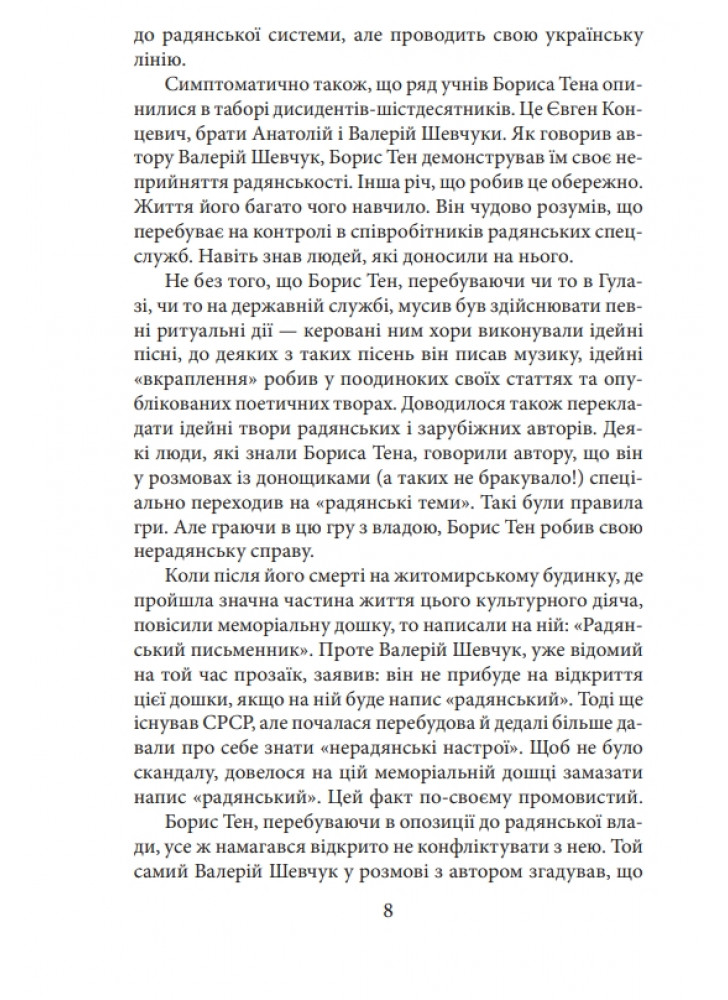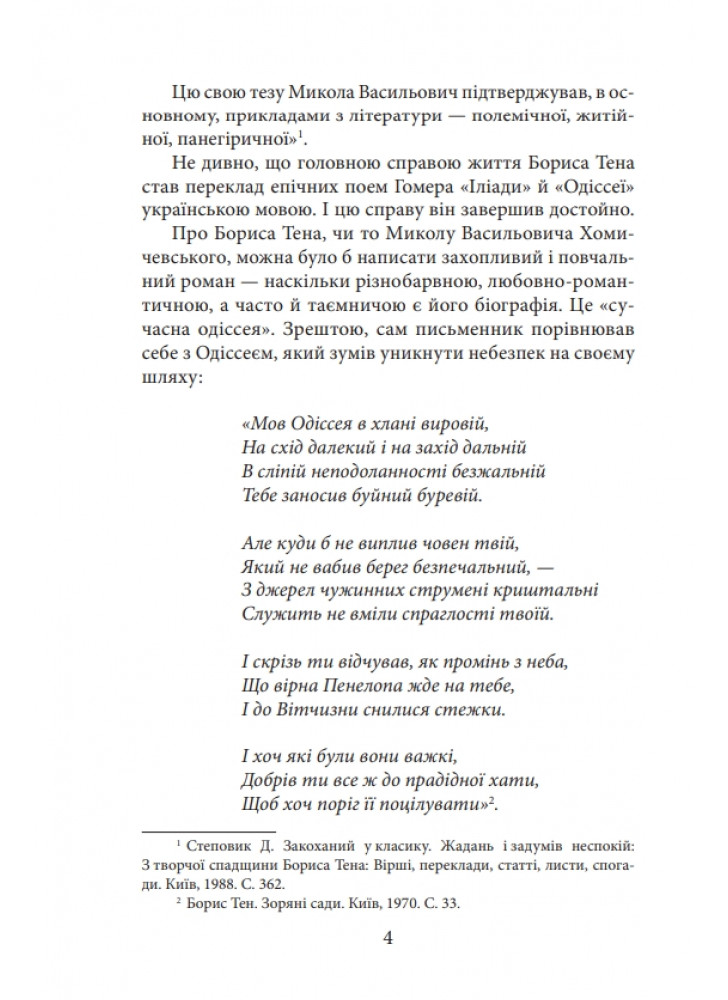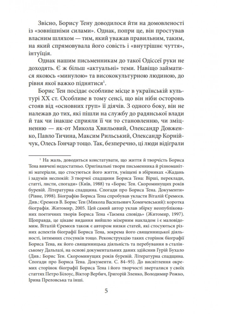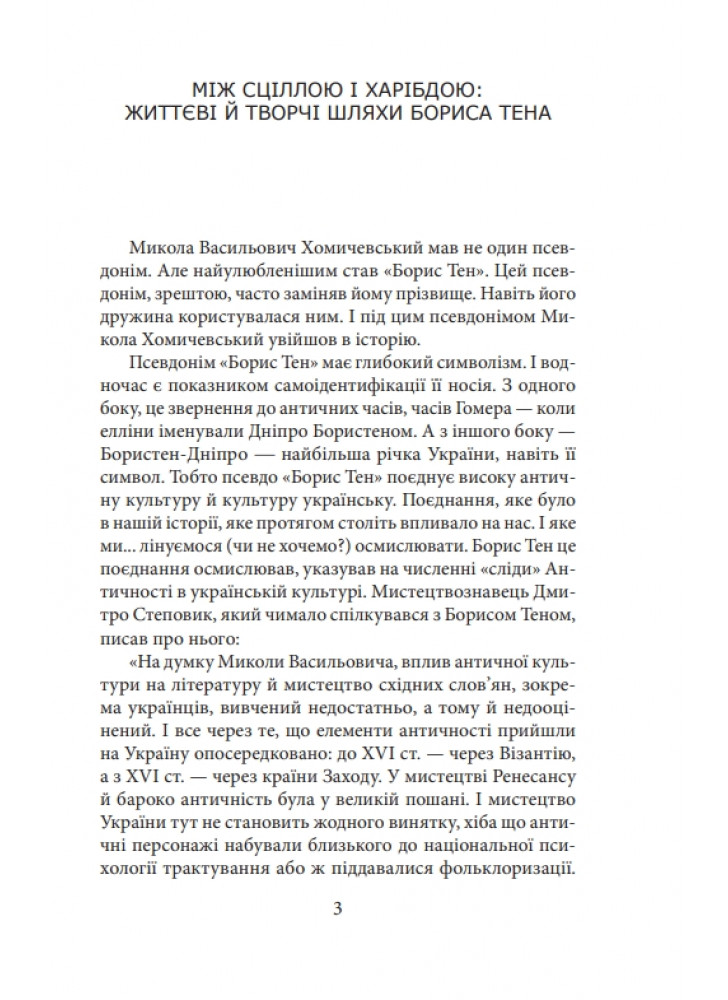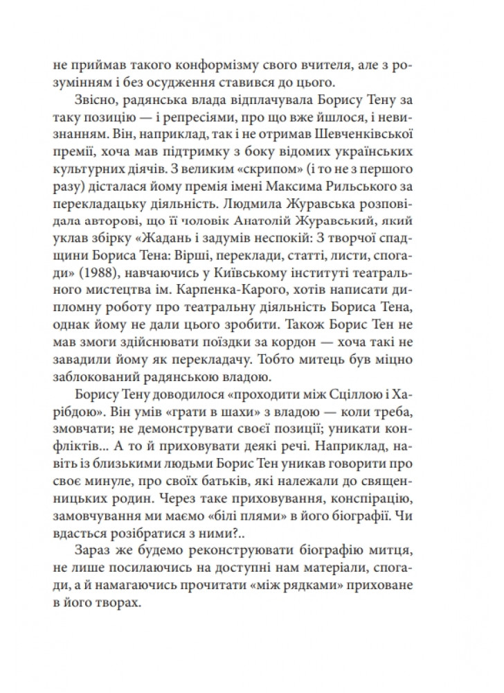 У новій книжці П. Кралюка представлено життєпис видатного українського поета, перекладача, мистецтвознавця й педагога Миколи Хомичевського, який творив під псевдонімом Борис Тен. Автор не просто знайомить читачів із фактами біографії та творчістю цього непересічного представника вітчизняної культури, а й прагне подати неупереджений погляд на його діяльність.
