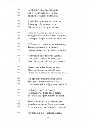 Текст книги подається італійською та українською мовою в перекладі Євгена Дроб’язка. Глави поеми проілюстровані картинами Олександра Ройтбурда.