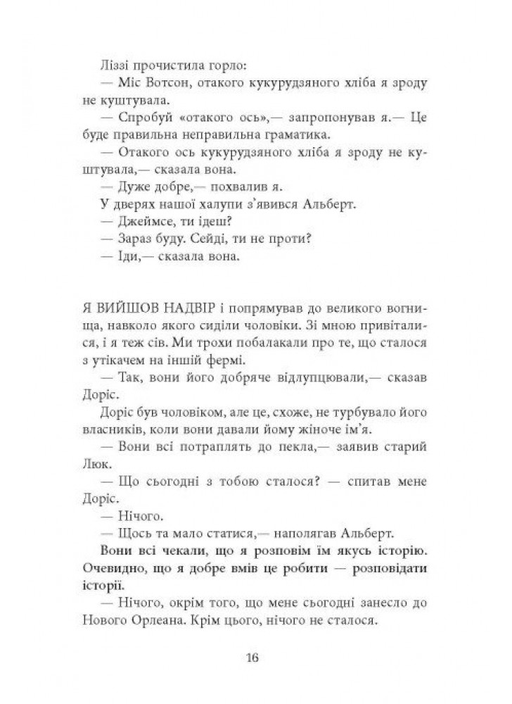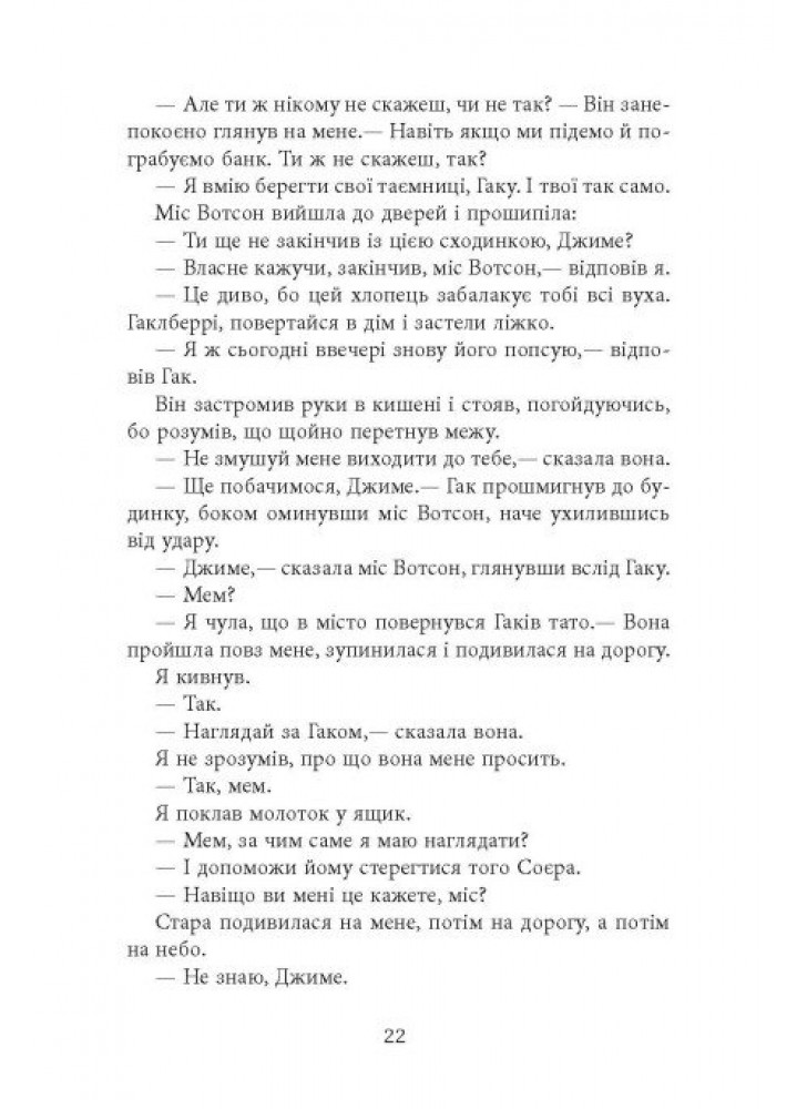 Чимало елементів сюжету «Пригод Гаклберрі Фінна» тут збережено, але внутрішня свобода, інтелект і здатність Джима до емпатії показані в радикально новому світлі, із блискучим гумором, глибиною і справжнім драматизмом. Цей роман став справжньою подією у США, і вже сьогодні вважається однією з найкращих книг в американській літературі двадцять першого століття.