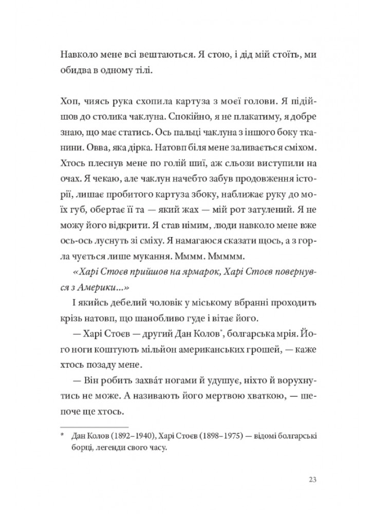 Мінотавром-дитиною, загубленим серед гамірливого ярмарку. В цьому романі Ґеорґі Ґосподінов, один із наймайстерніших оповідачів сучасної європейської літератури — у своїй чудовій формі. Він розмотує перед нами нитки численних сюжетів, щоб урешті сплести їх у тугий вузол, усередині якого — пам’ять і легкий смуток.