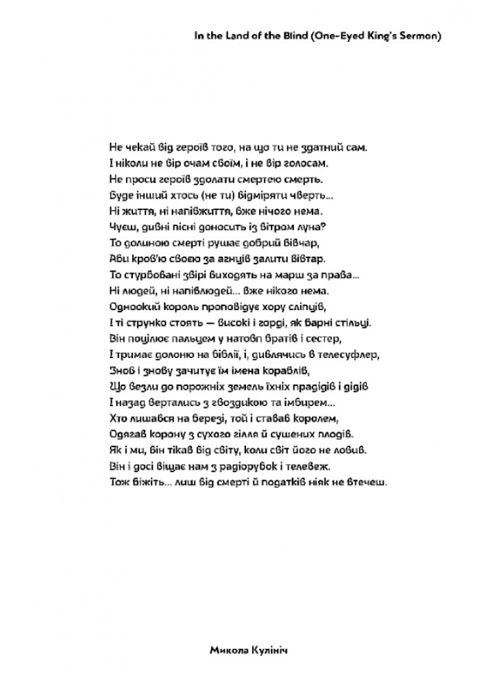 Український поет, музикант і громадський активіст, який своїми віршами привернув давно небачену увагу до сучасної української поезії: декламація автора набирає мільйони переглядів у соцмережах, його вірші читають у прайм-тайм на центральних телеканалах, їх кладуть на музику та озвучують на проукраїнських мітингах по всьому світу різними мовами.