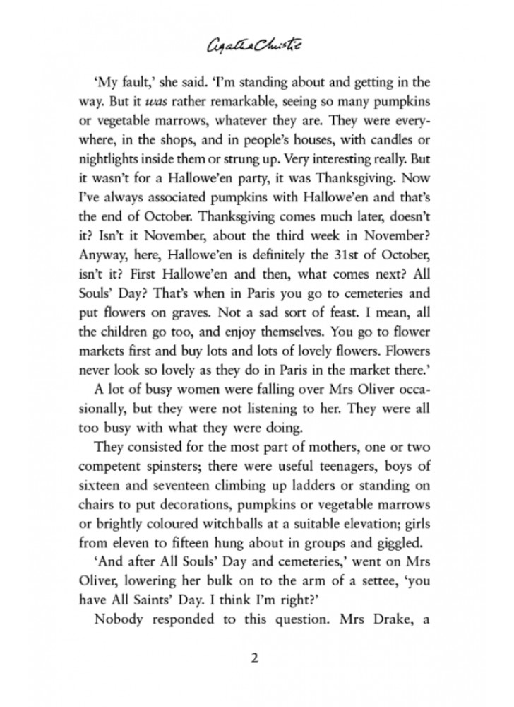 Книжка, що надихнула фільм «Привид у Венеції» — тепер екранізована на великому екрані. Коли Гелловінська вечірка закінчується смертю, тільки Еркюль Пуаро може викрити вбивцю… Під час вечірки на Гелловін тринадцятирічна Джойс — зухвала й неприязна дівчинка — вихваляється, що одного разу стала свідком убивства.