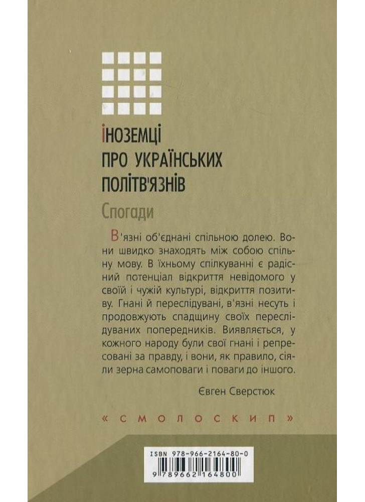 Пропонуємо увазі читачів унікальну добірку спогадів 25 іноземців (росіян, євреїв, вірмен, естонців, австрійця, литовця, італійця та інших) про українських політв'язнів, разом з якими протягом 1950— 1980-х рр. вони відбували покарання на неозорих теренах колишнього Радянського Союзу (в Омських, Мордовських і Пермських концтаборах, у Владимирській тюрмі, на Печорі, в ГУЛазі та ще багатьох сумнозвісних місцях).